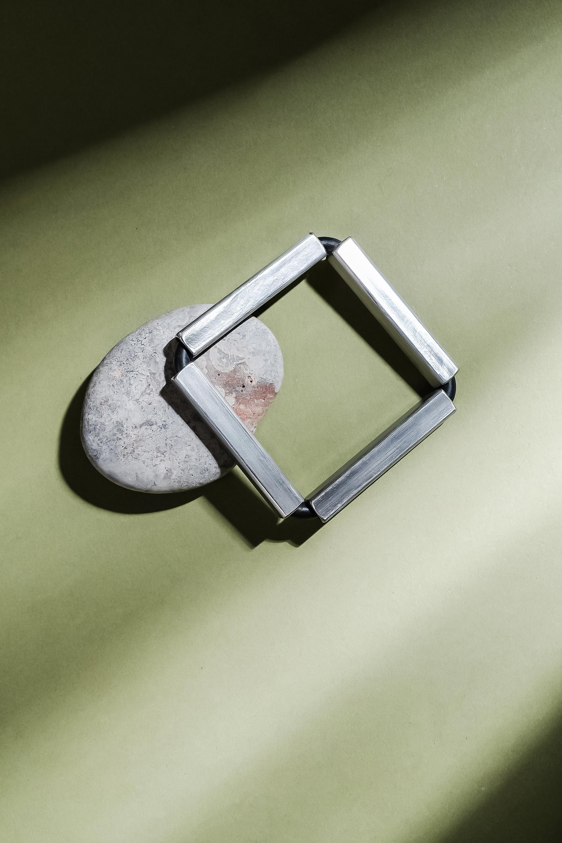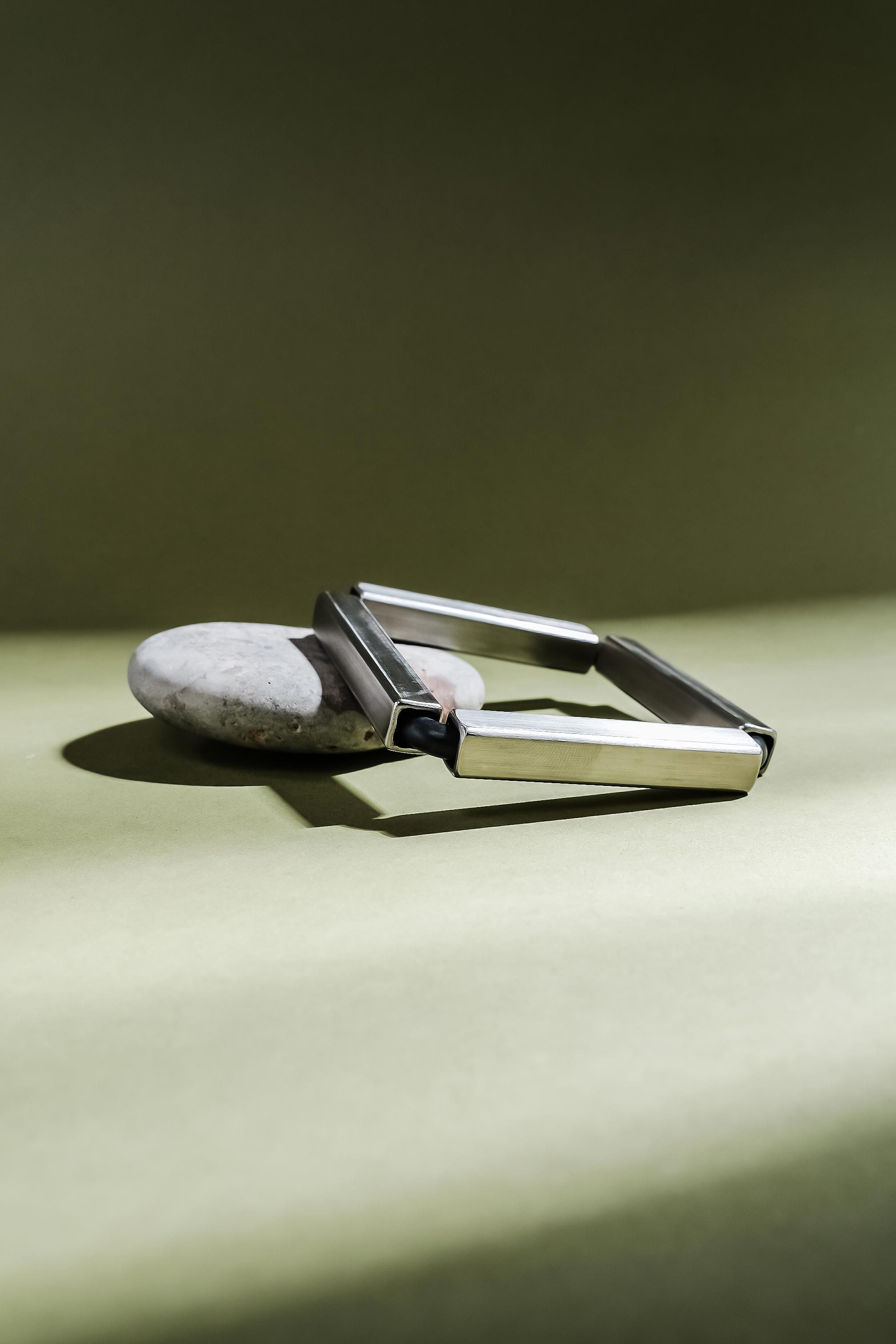 Square bracelet made of stainless steel and rubber by anaanaana.
