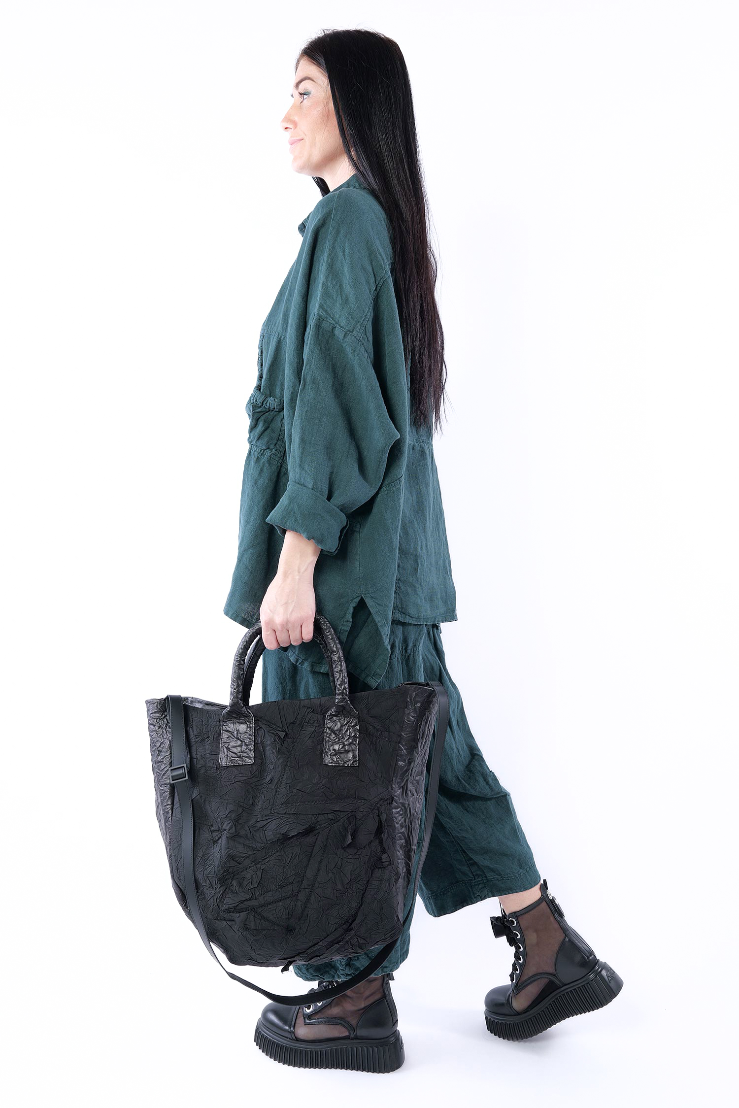 Details: - Creased leather - Two carrying straps - One long adjustable strap circa 69.0 – 132.0 cm long - Zipper - Inner compartment with zipper - Inner lining