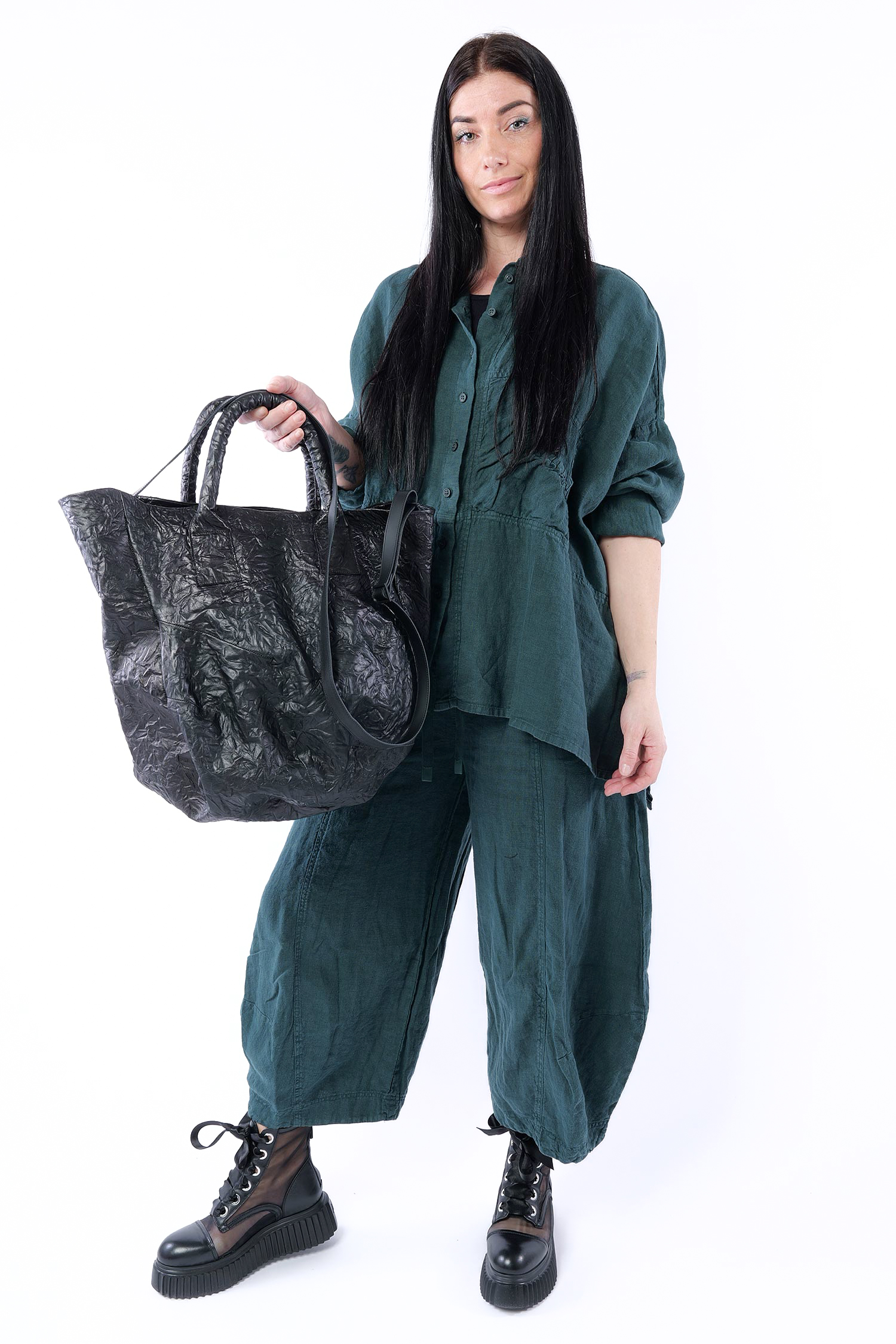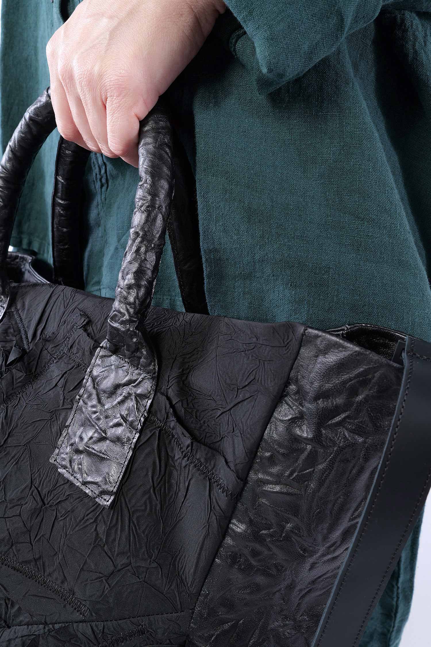 Leather handbag made of creased leather by Papucei.