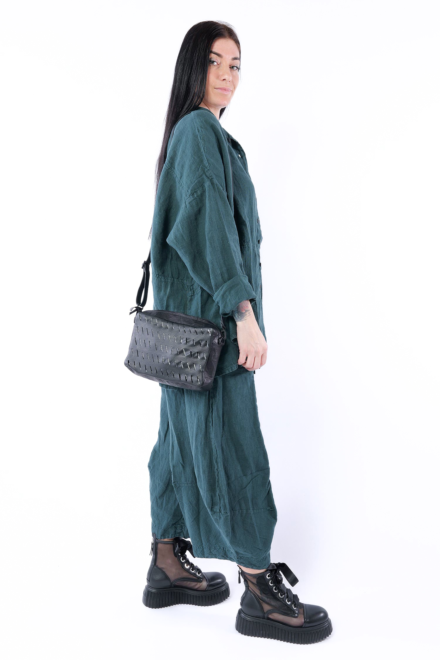 Details: - Angular shape - Small cuts in outer material - Long adjustable strap 69.0 – 132.0 cm - Zipper - Inner compartment with zipper - Inner lining