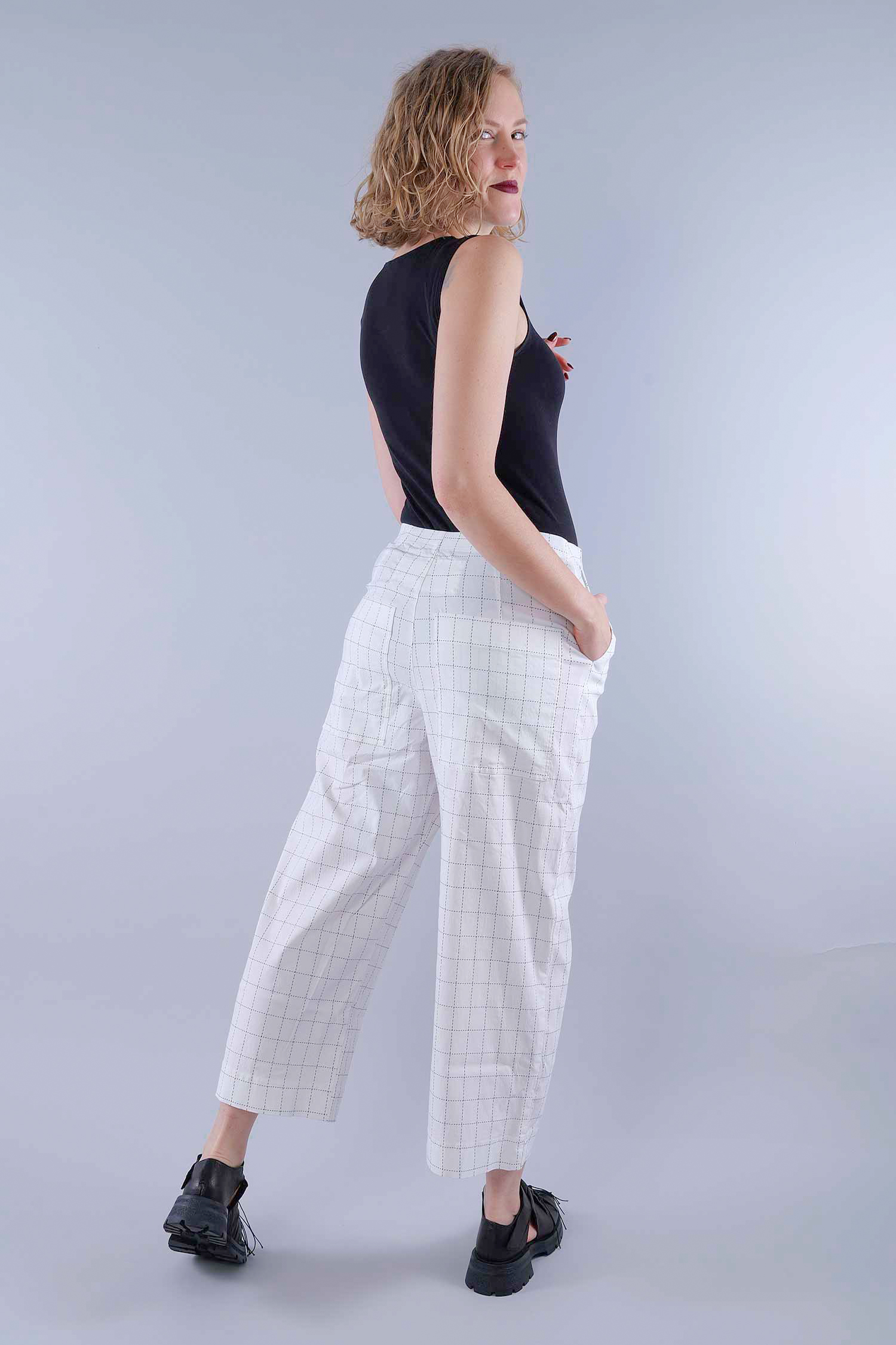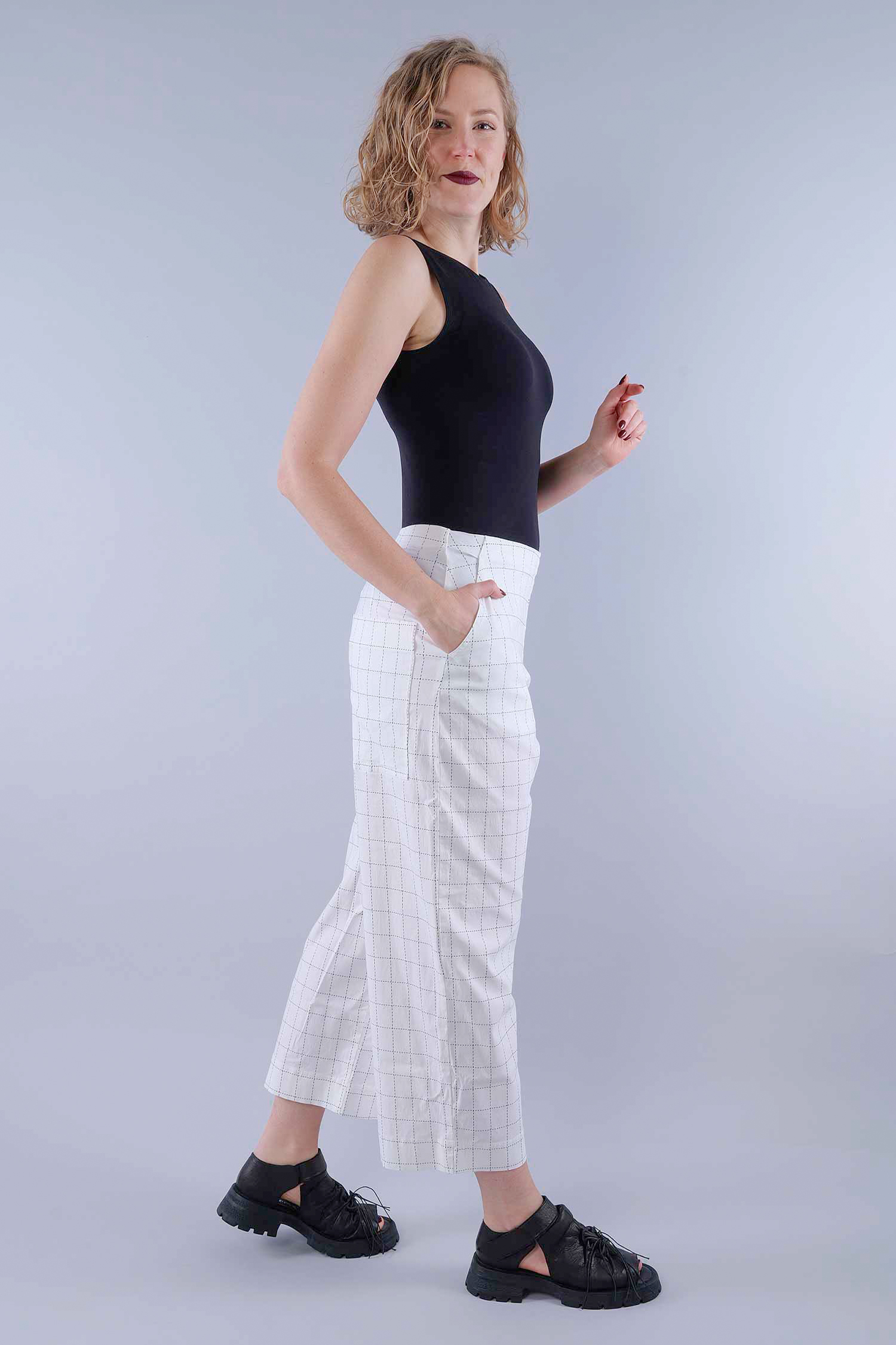 Stretch culottes - Offwhite check - 1263440103
