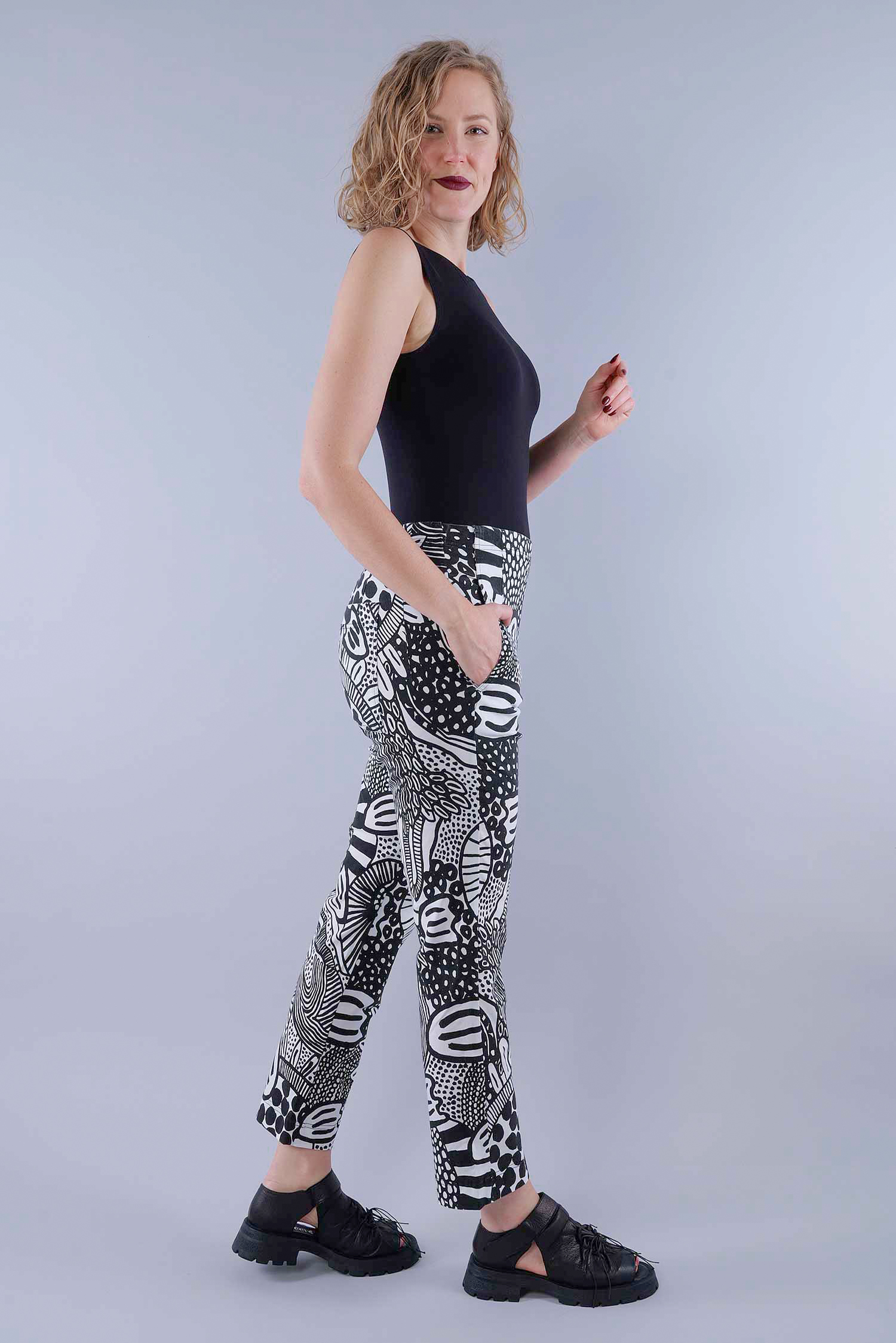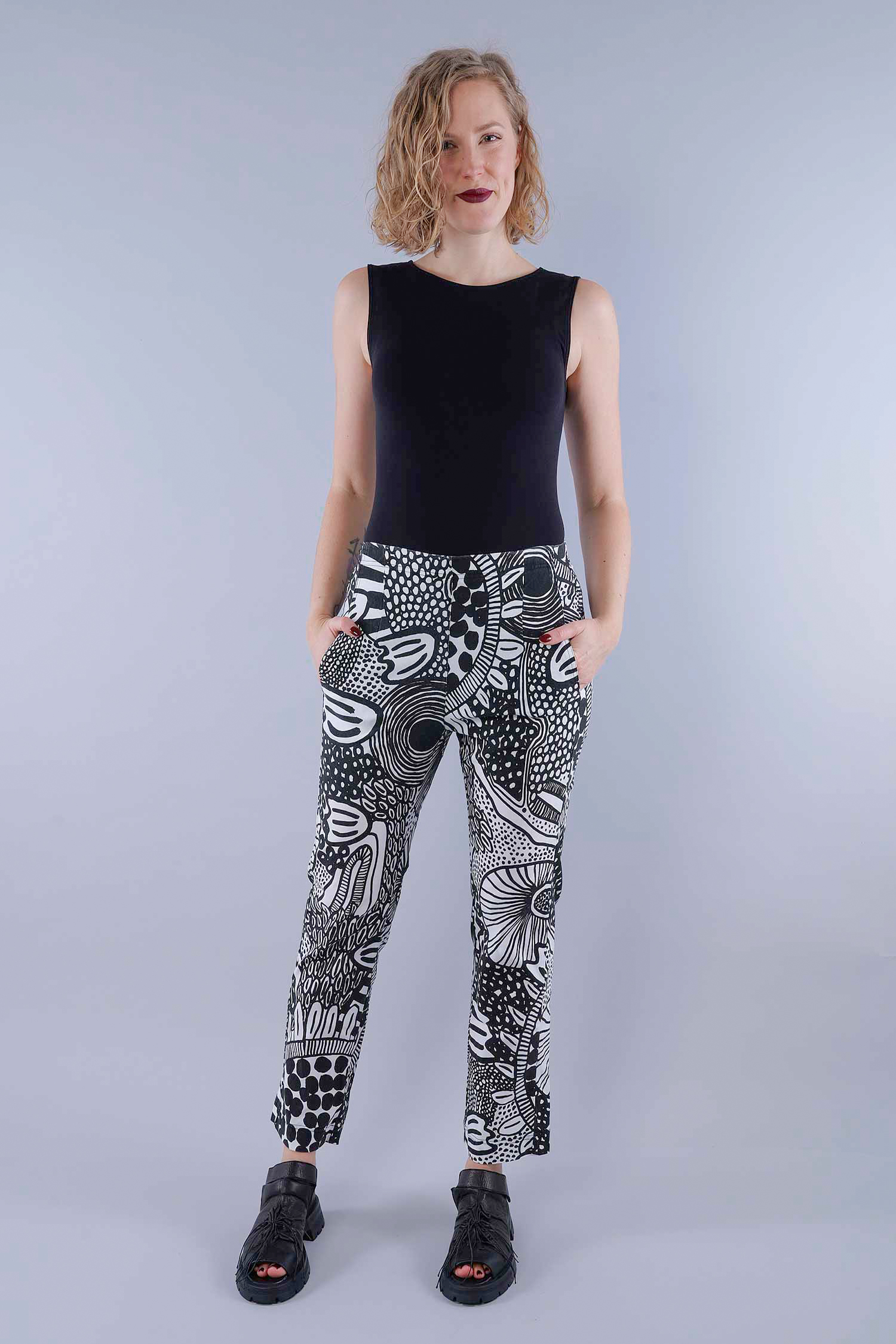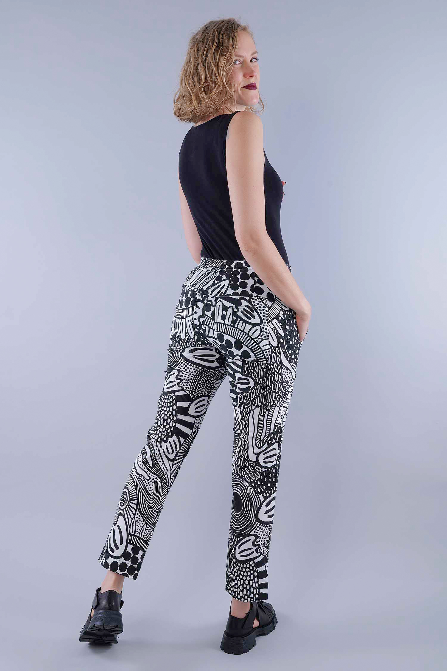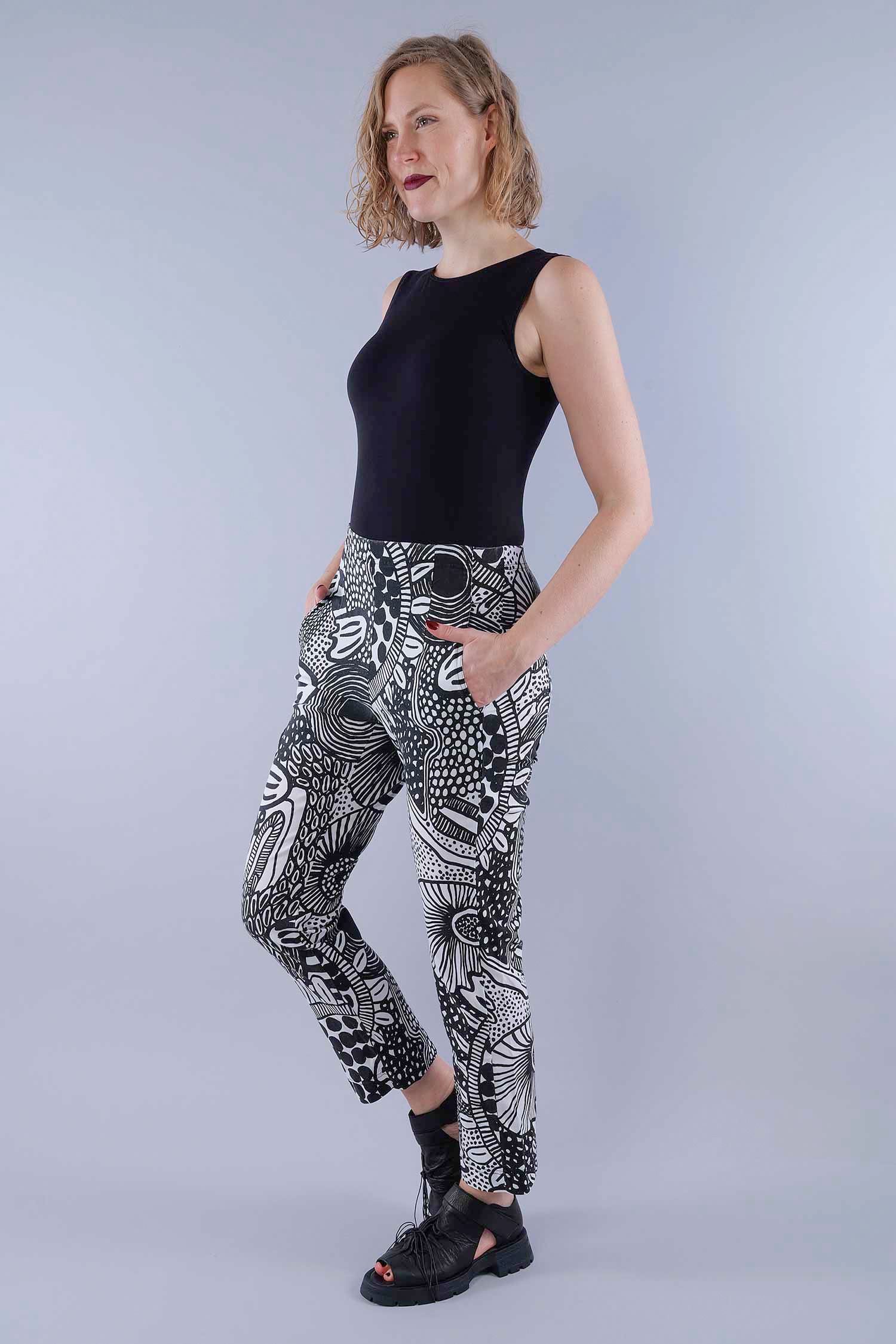 Casual stretch pants - Black print - 1263440104
