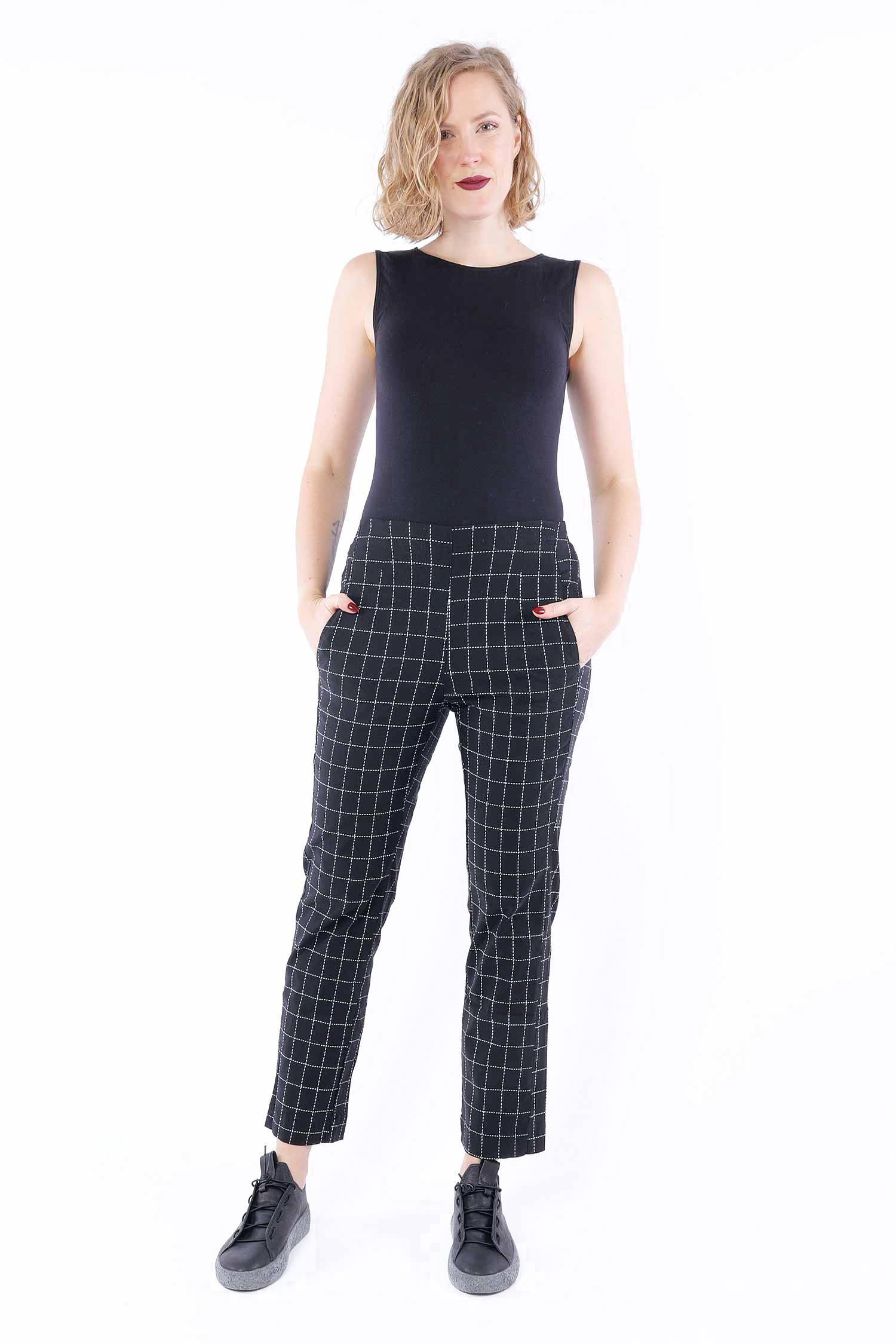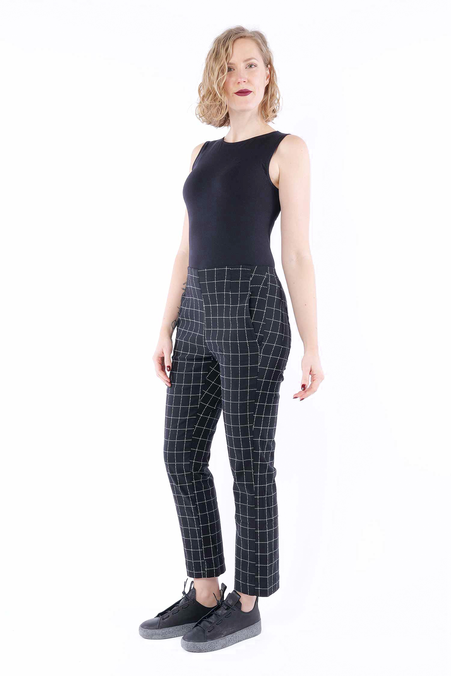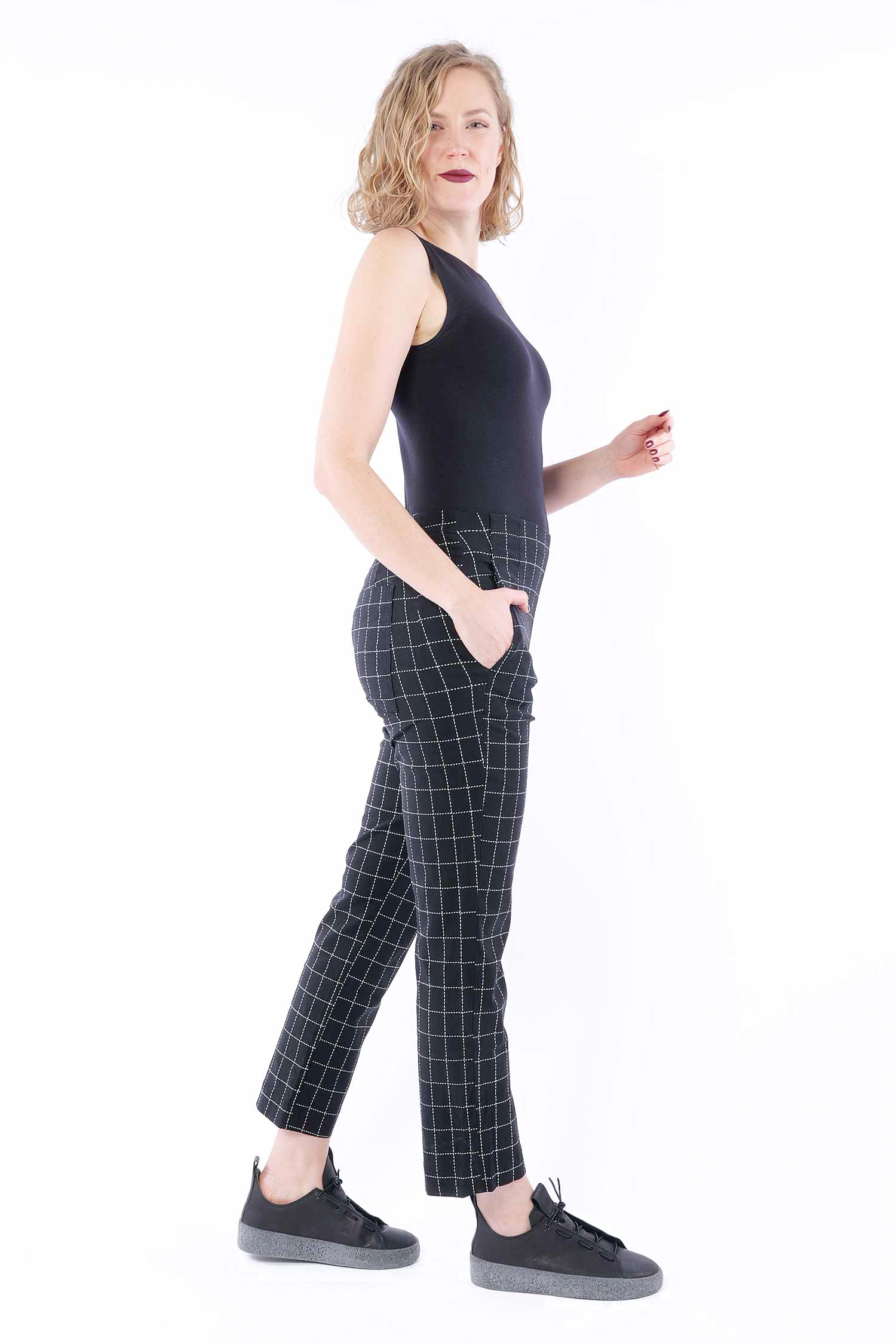 Casual stretch pants - Black check - 1263440104