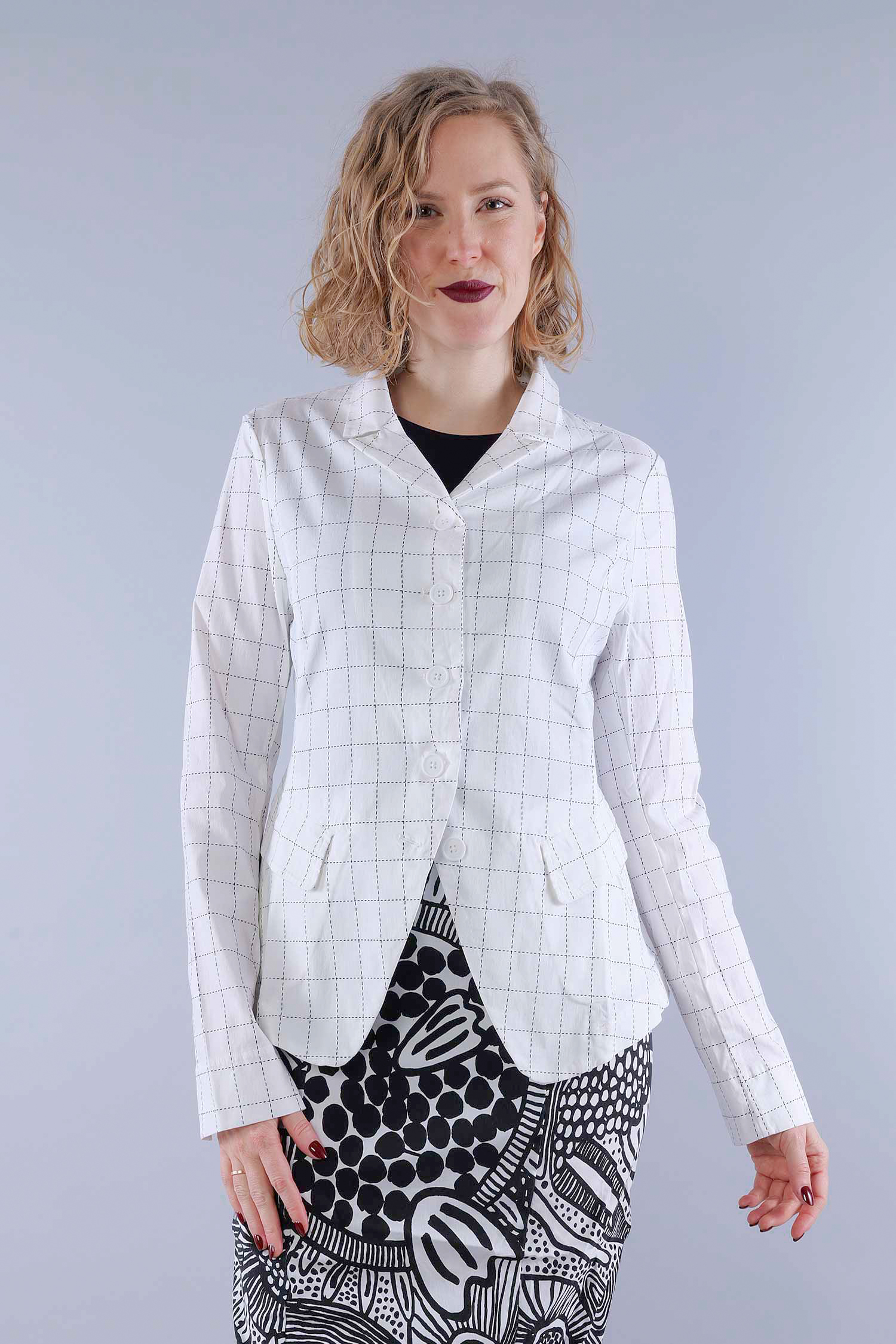 Stretch blazer jacket - Offwhite check - 1263441107