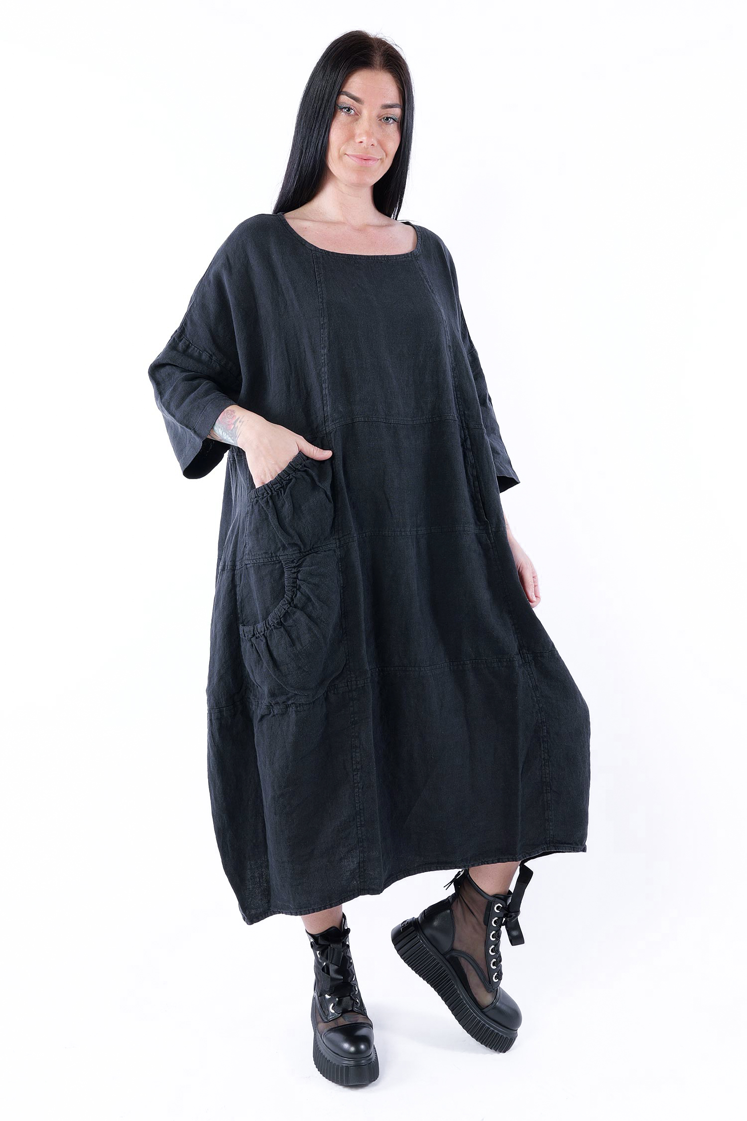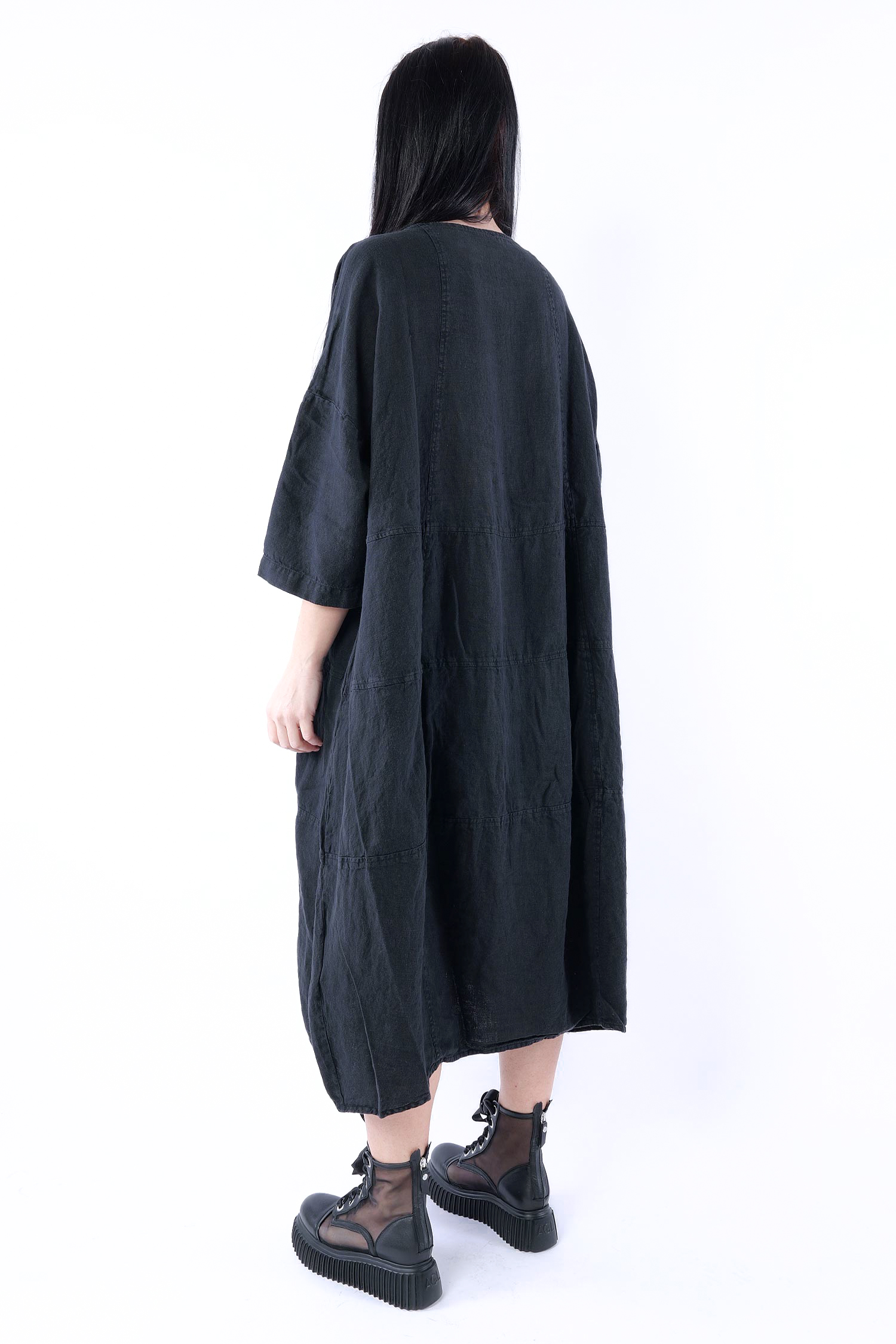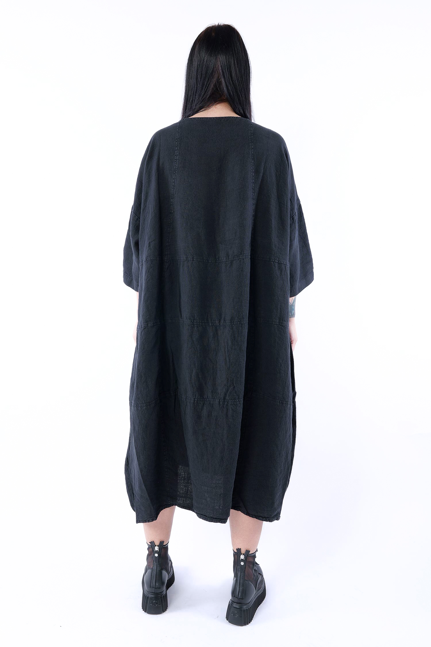 Oversized linen dress - Black - 1263540904