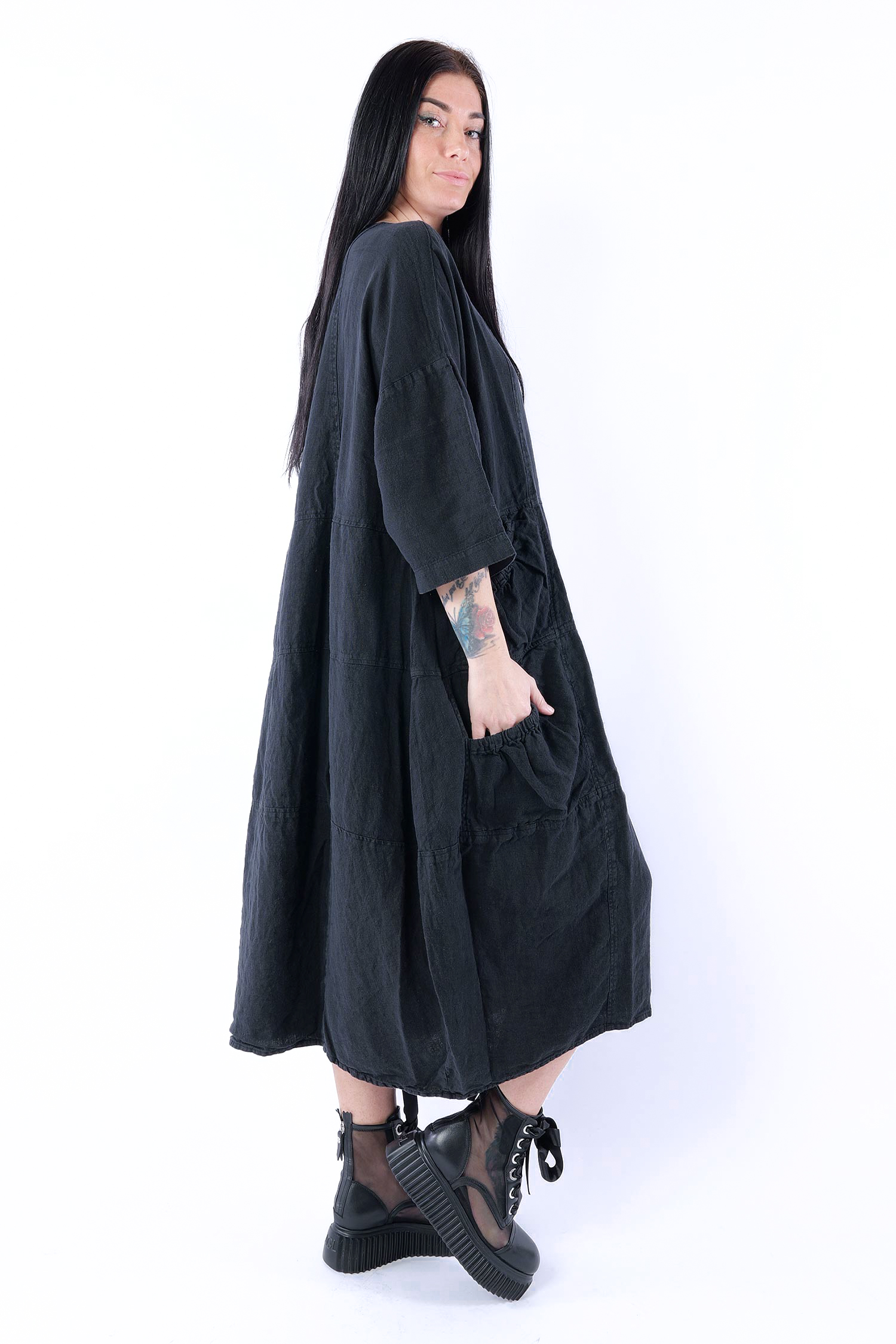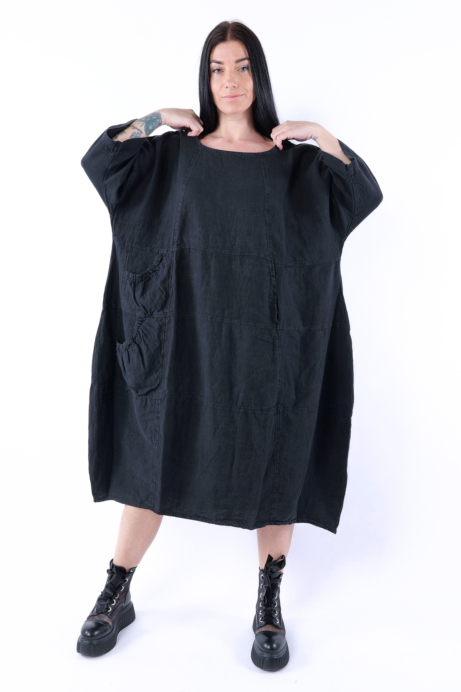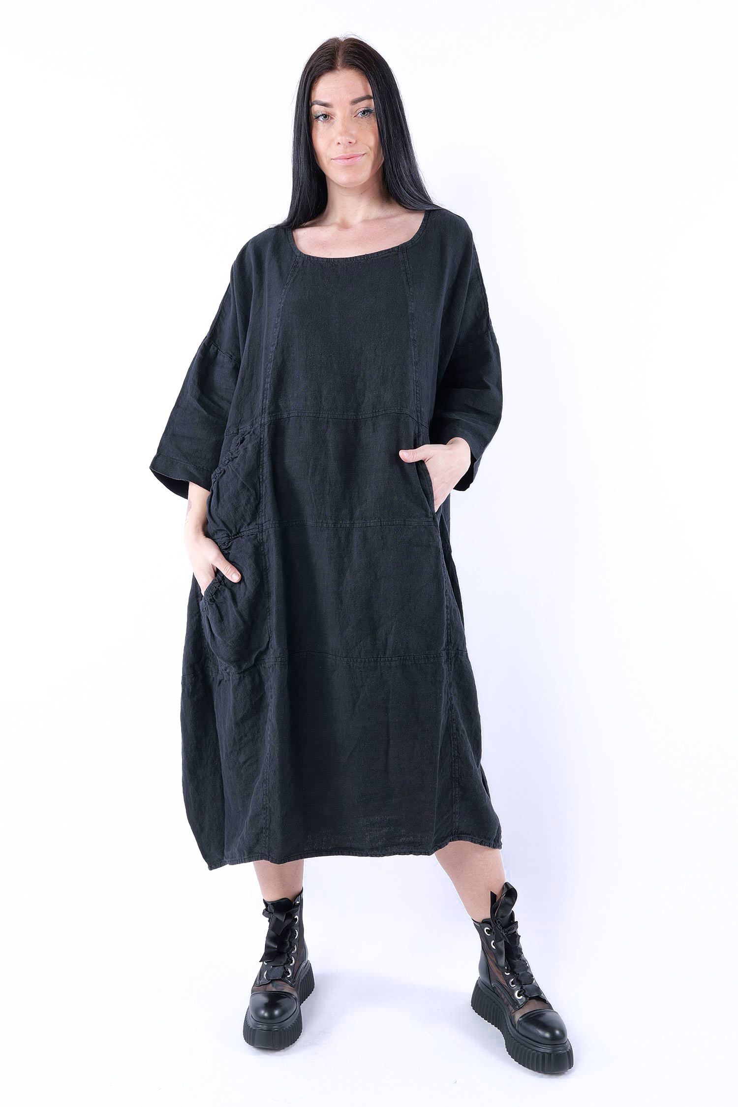 Oversized linen dress - Black - 1263540906