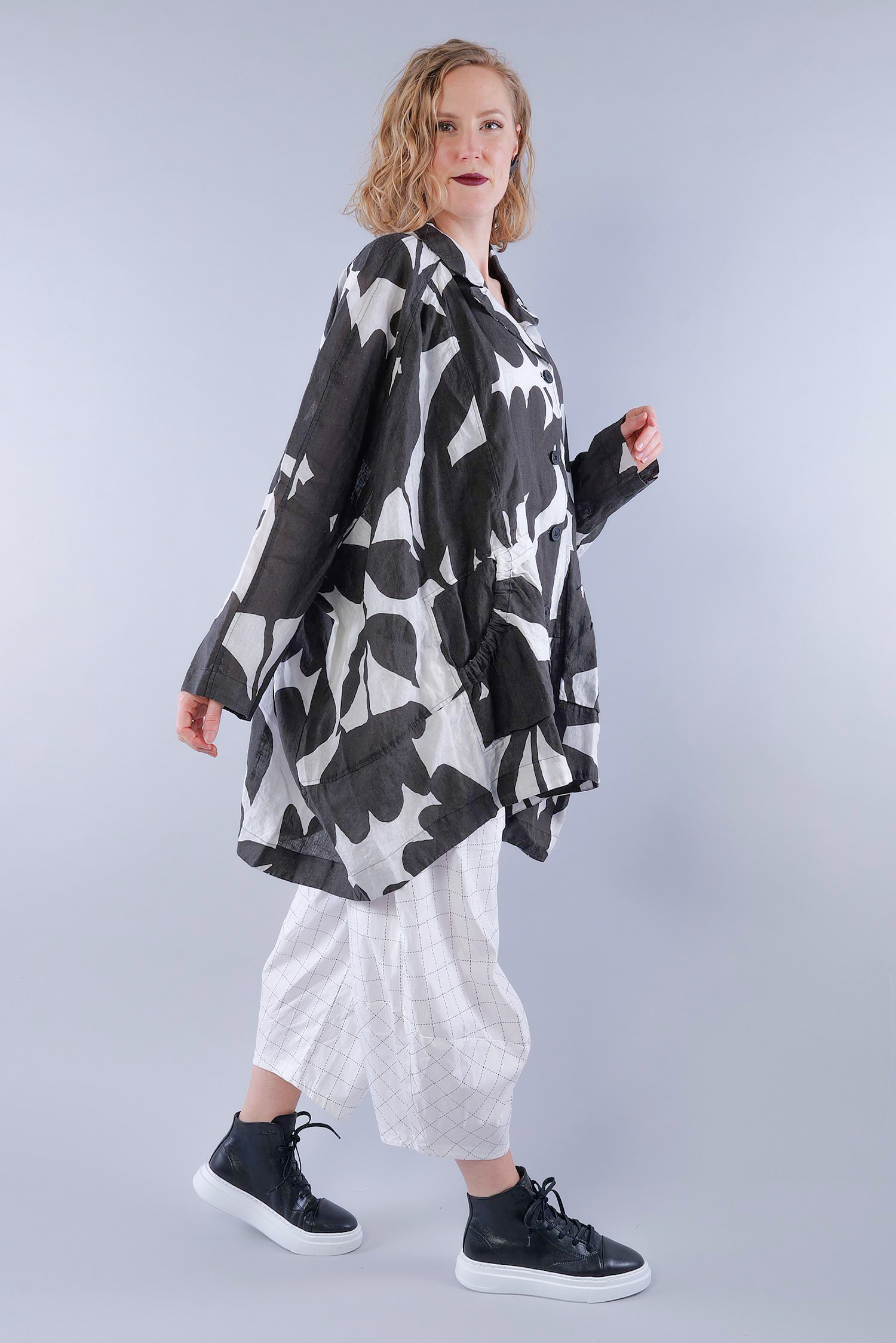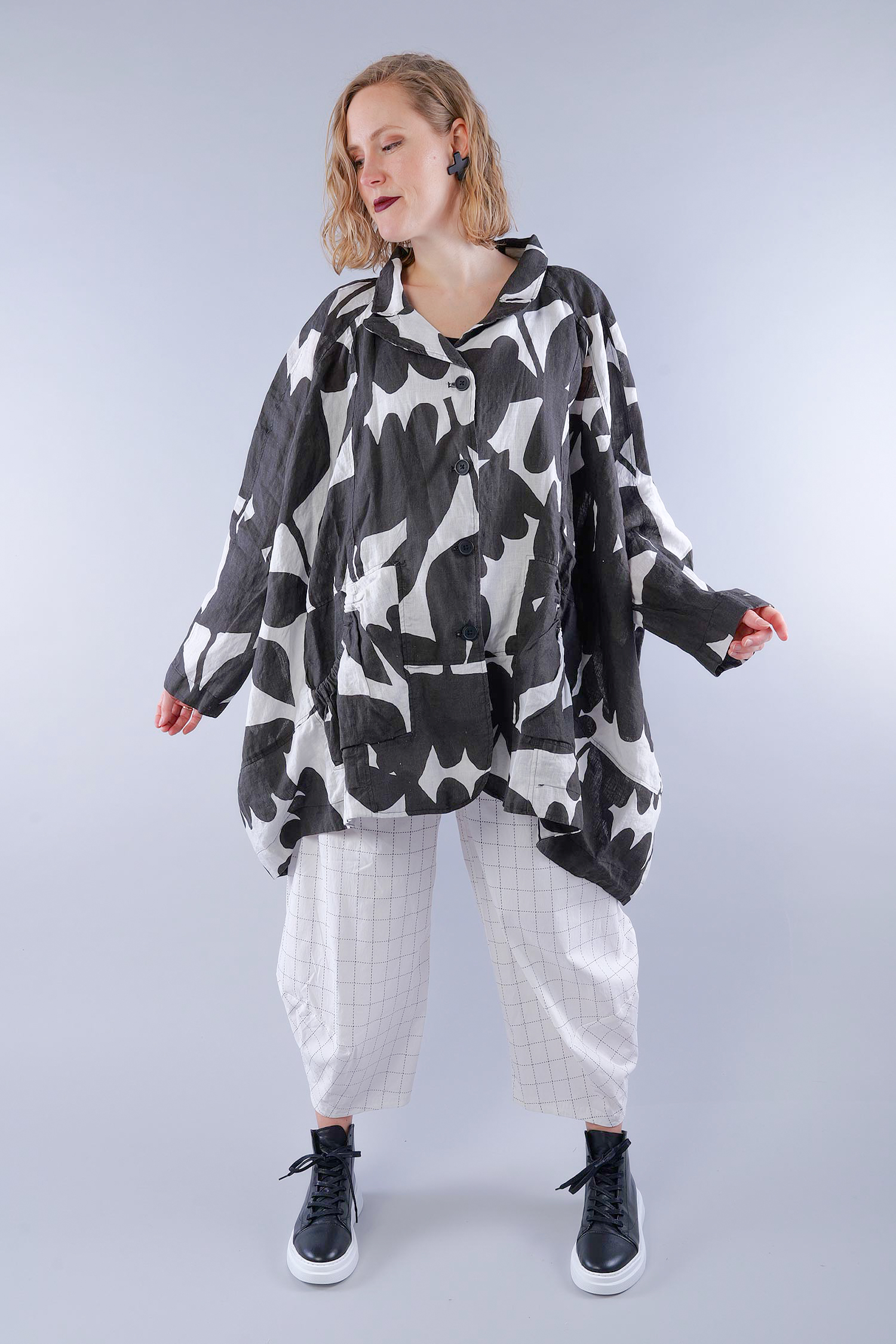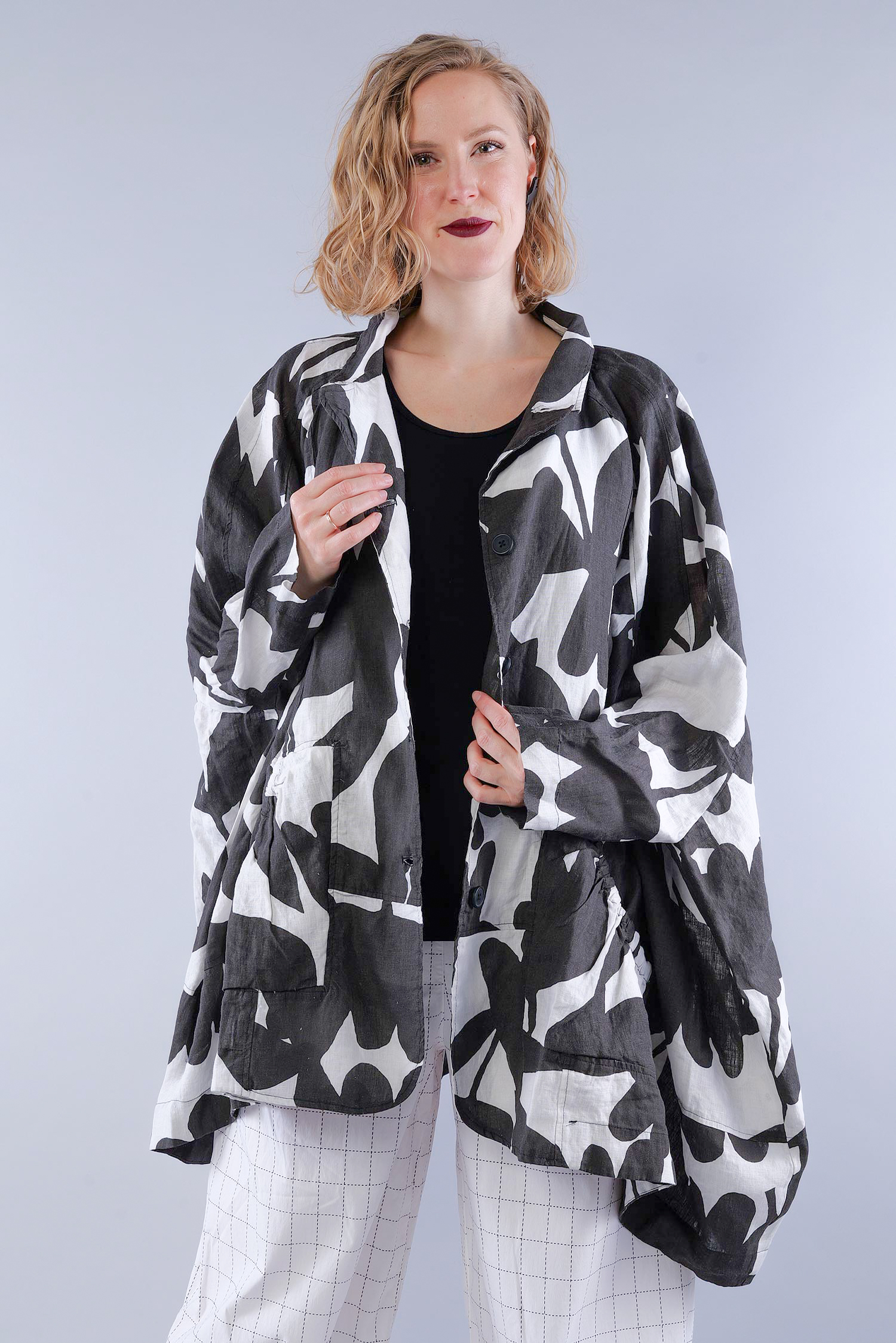 Oversized linen jacket - Black print - 1263551101