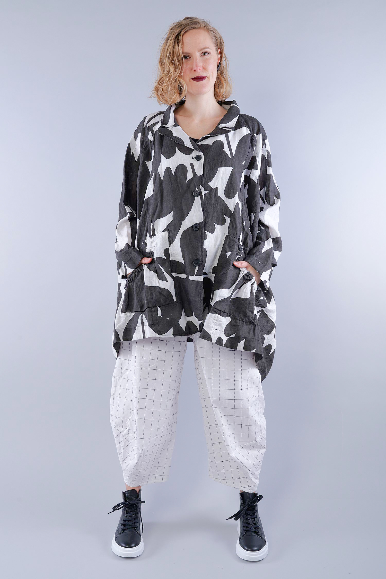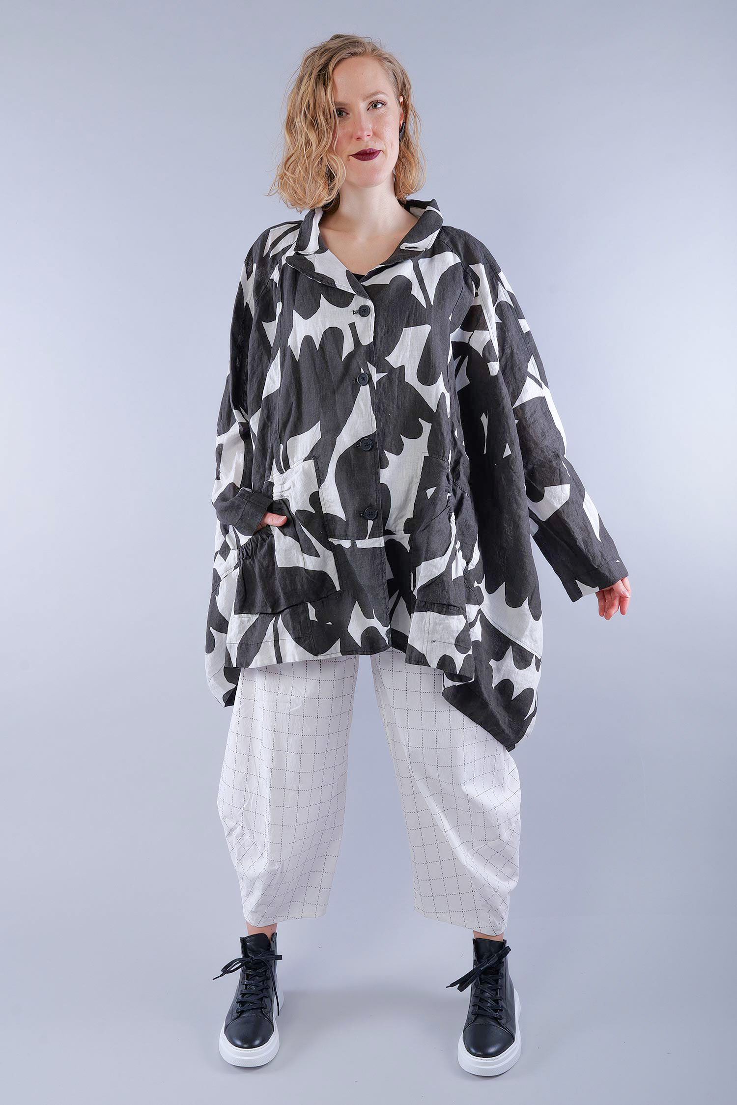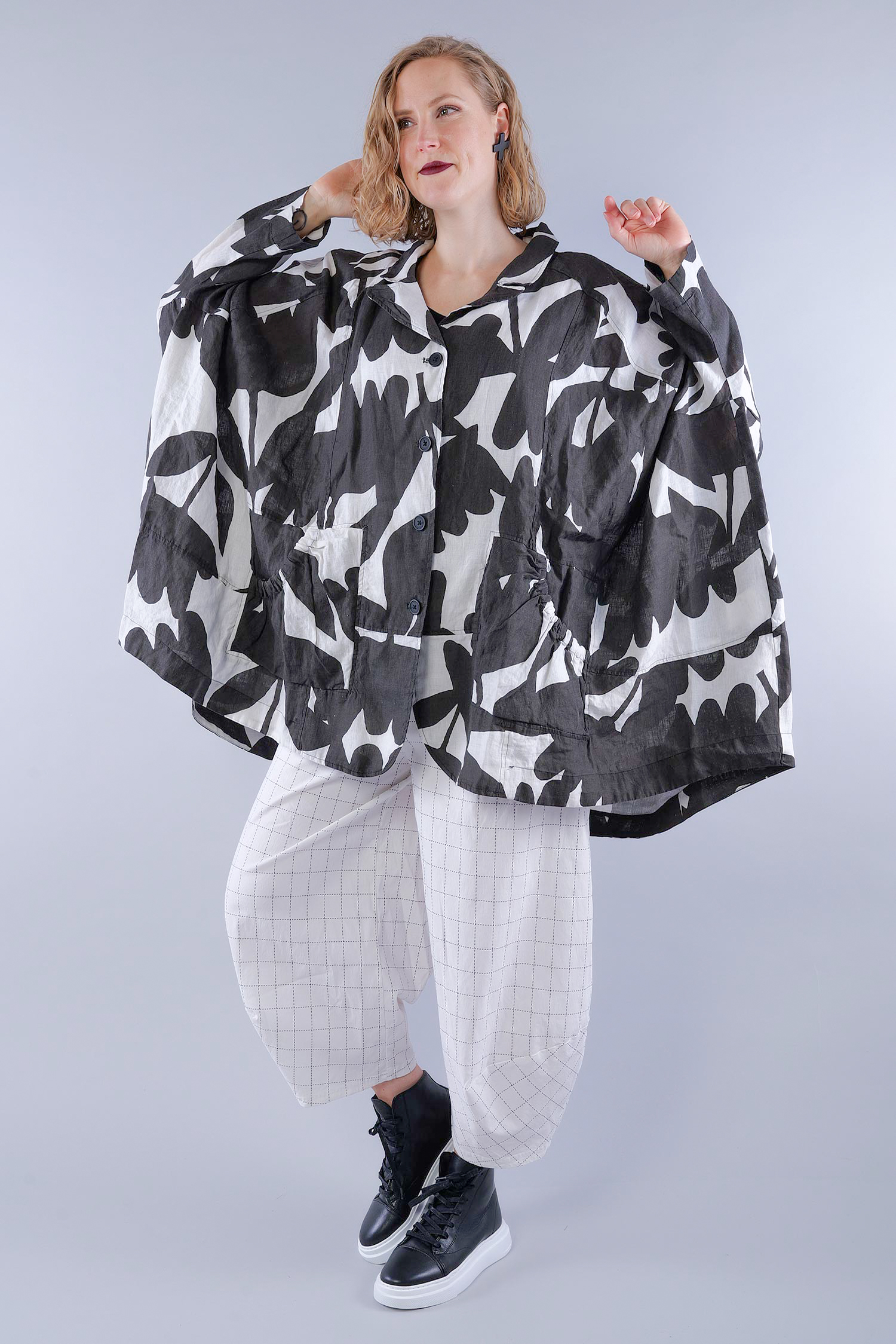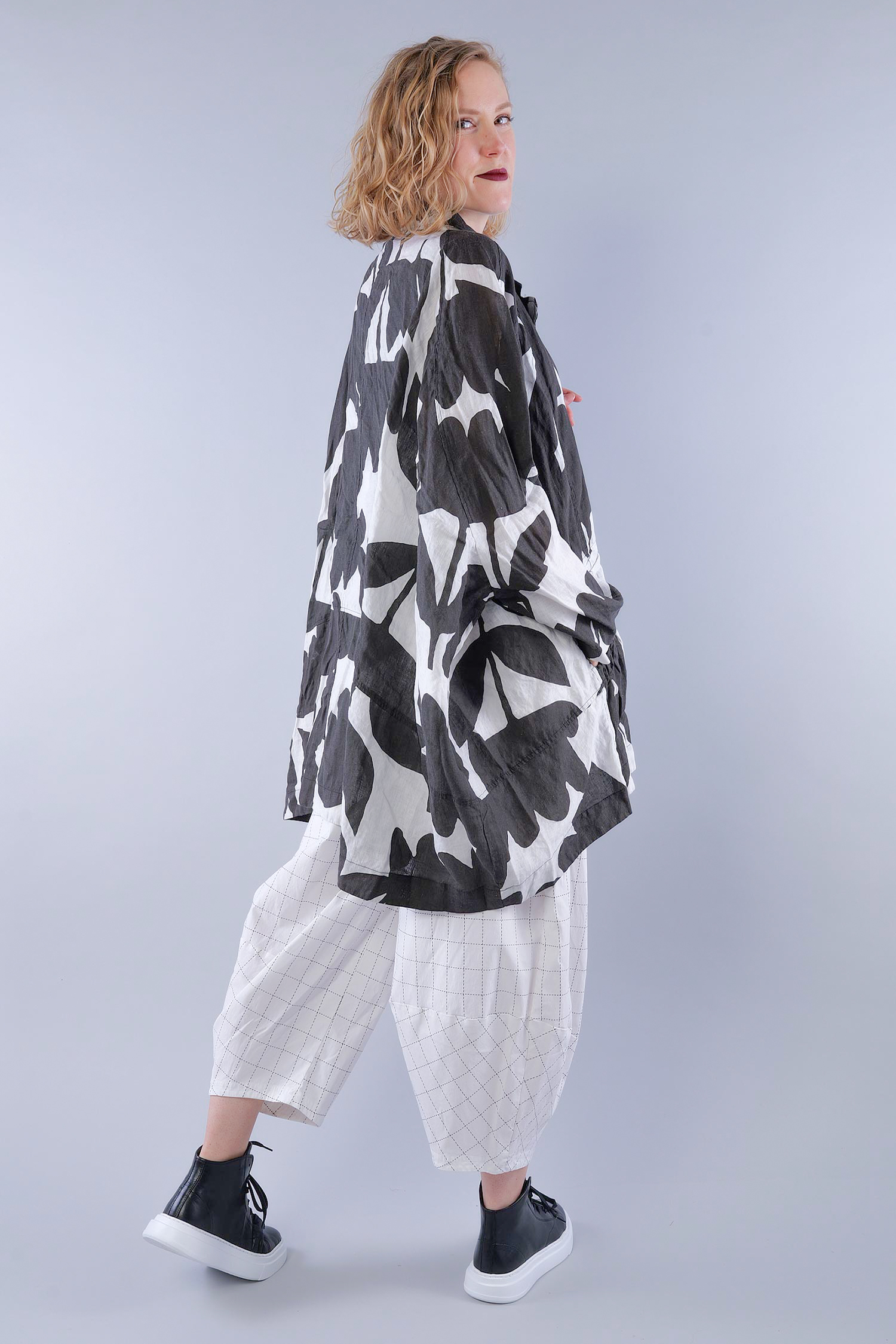 Oversized linen jacket - Black print - 1263551101