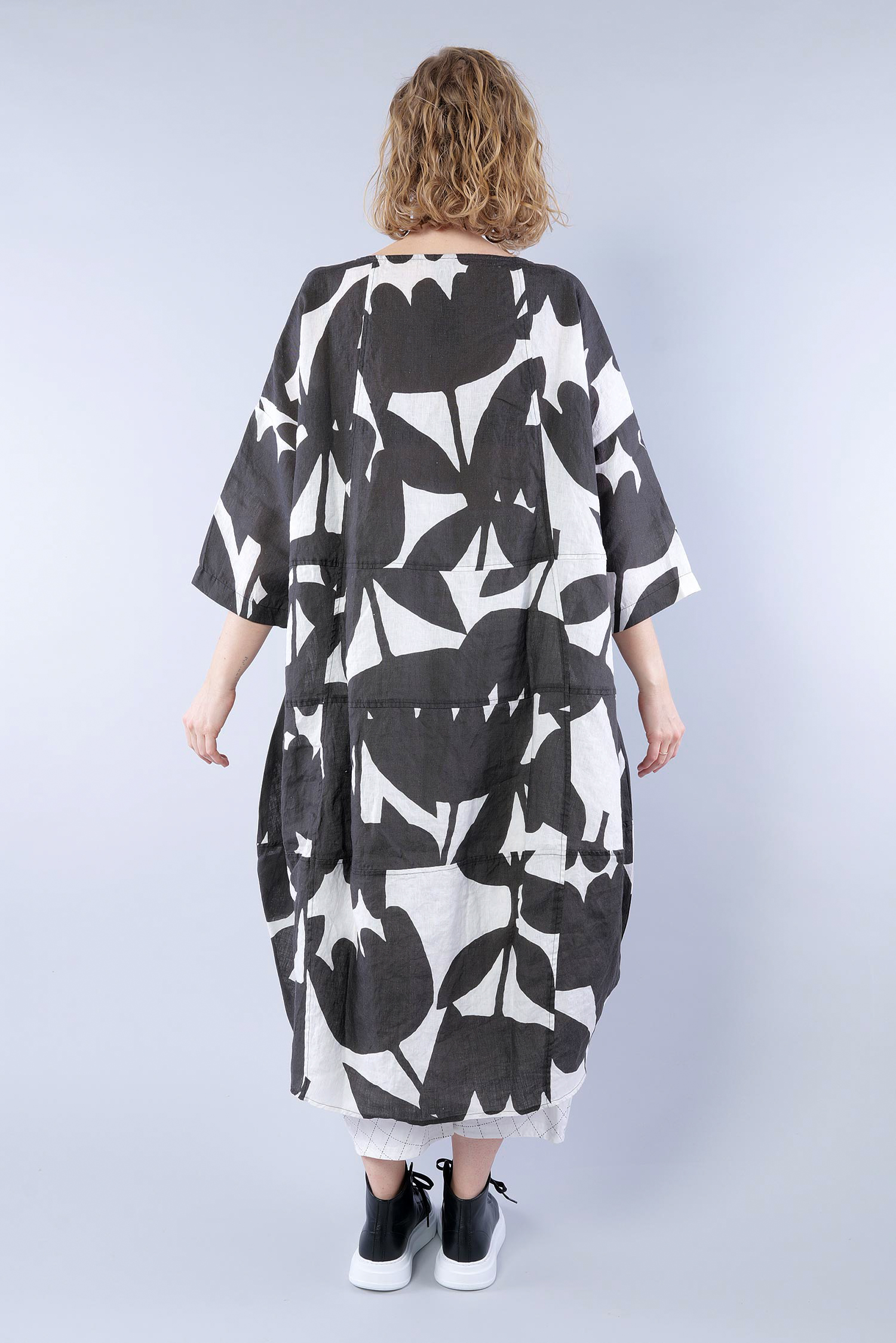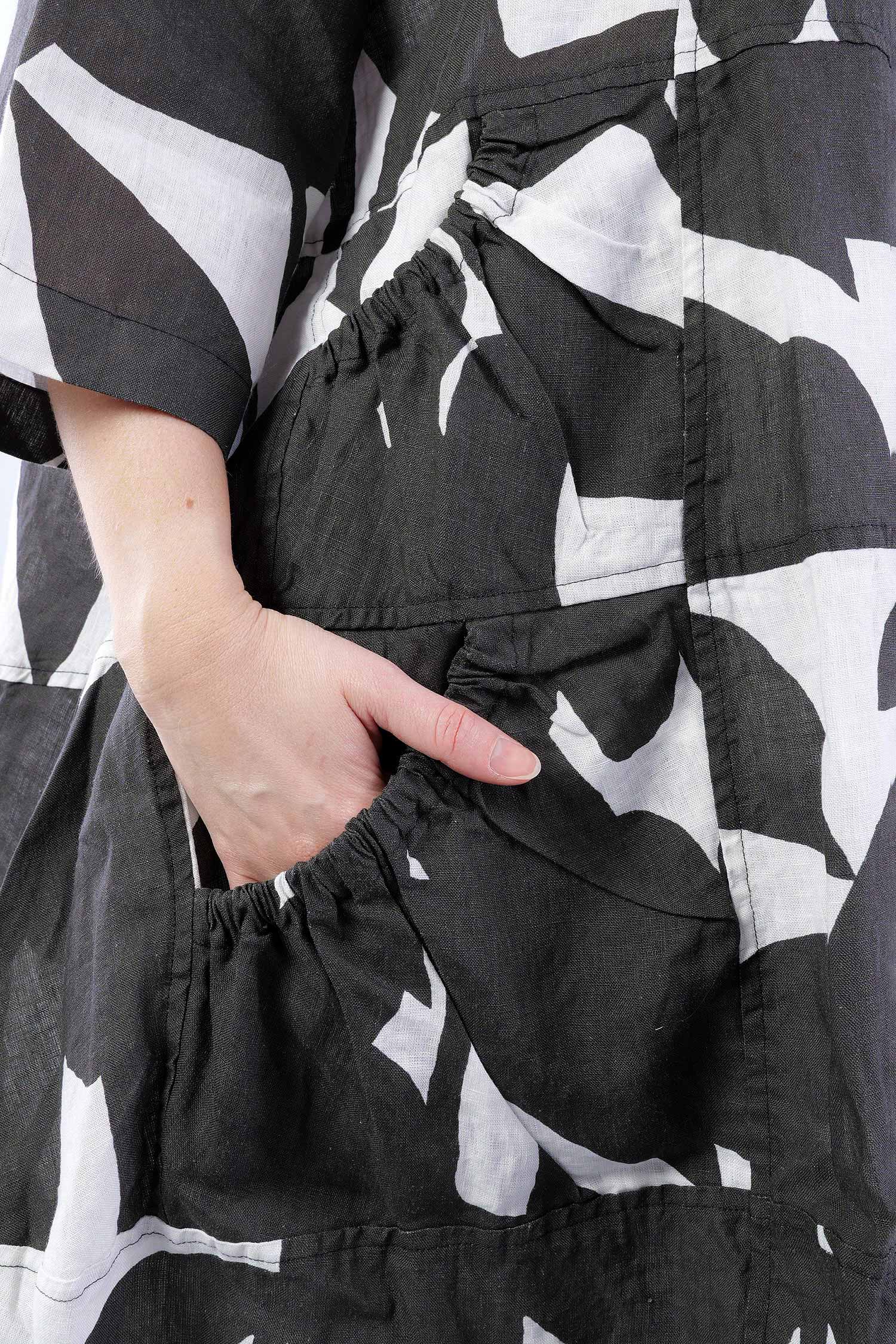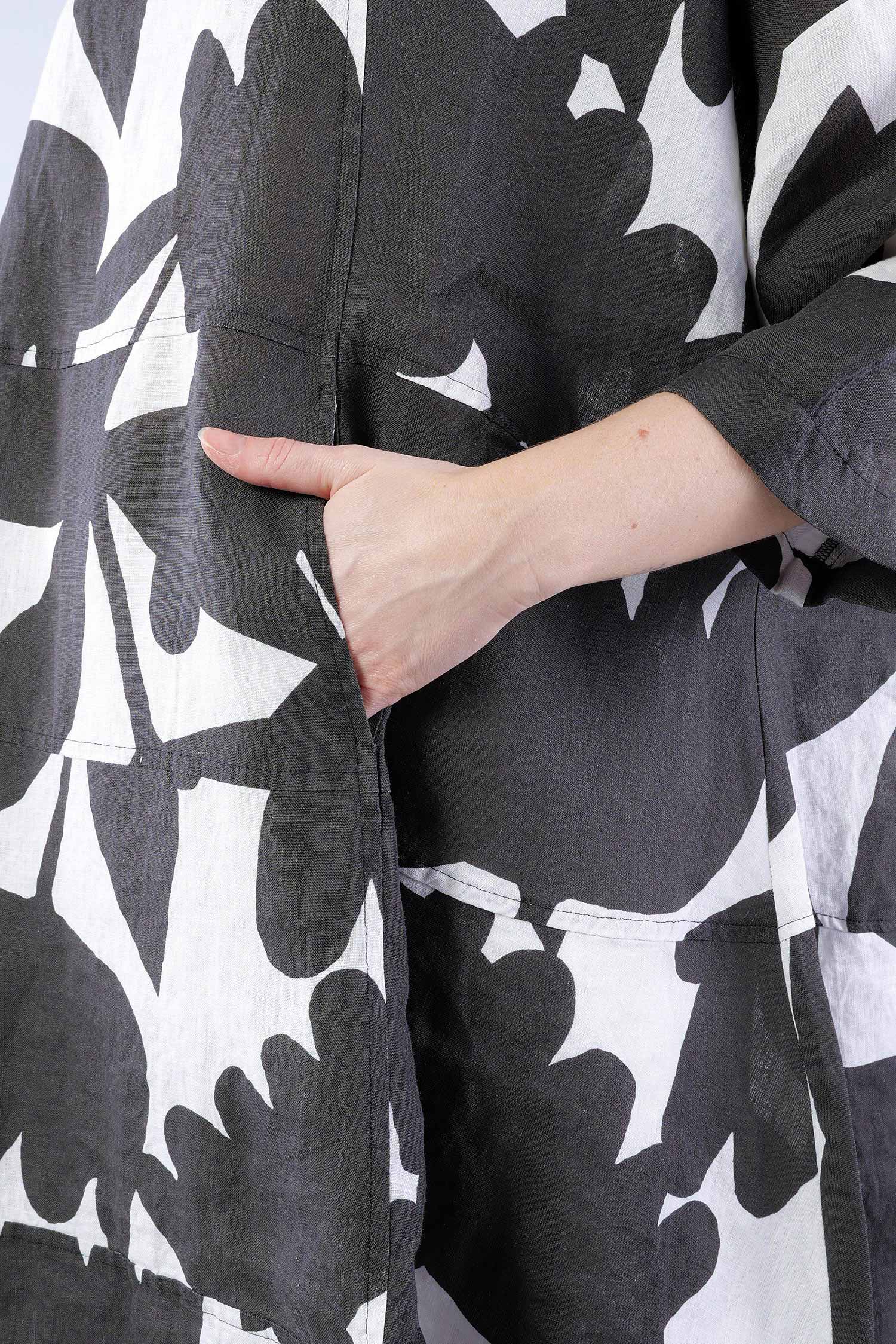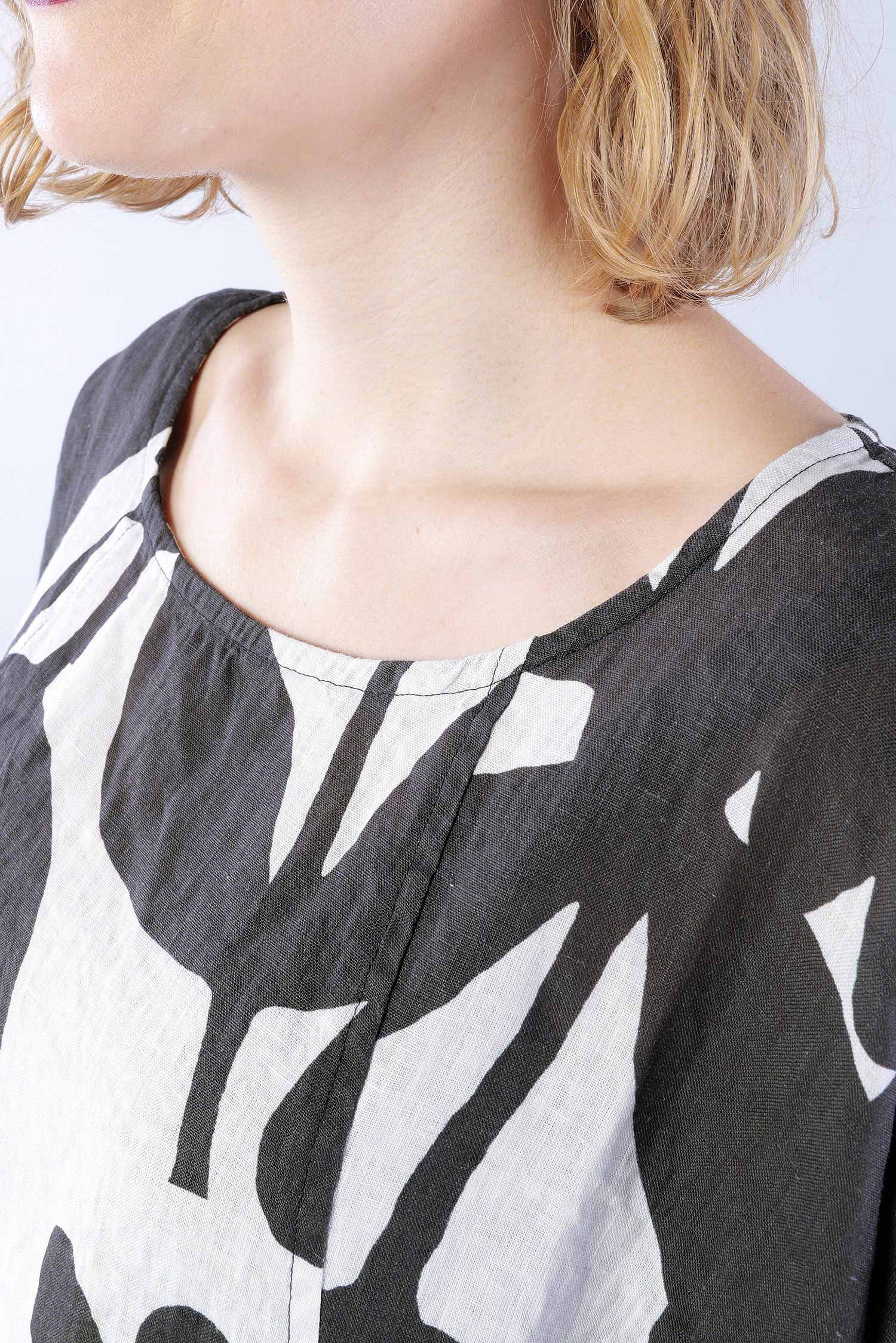 Oversized linen dress - Black print - 1263550905