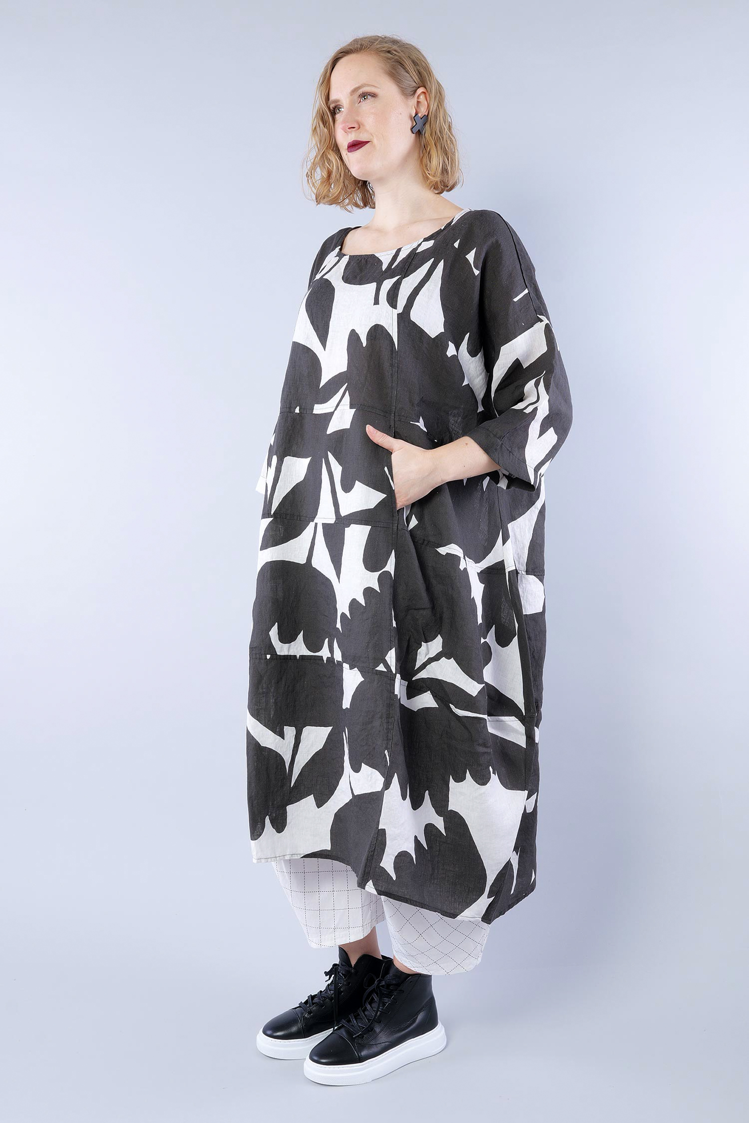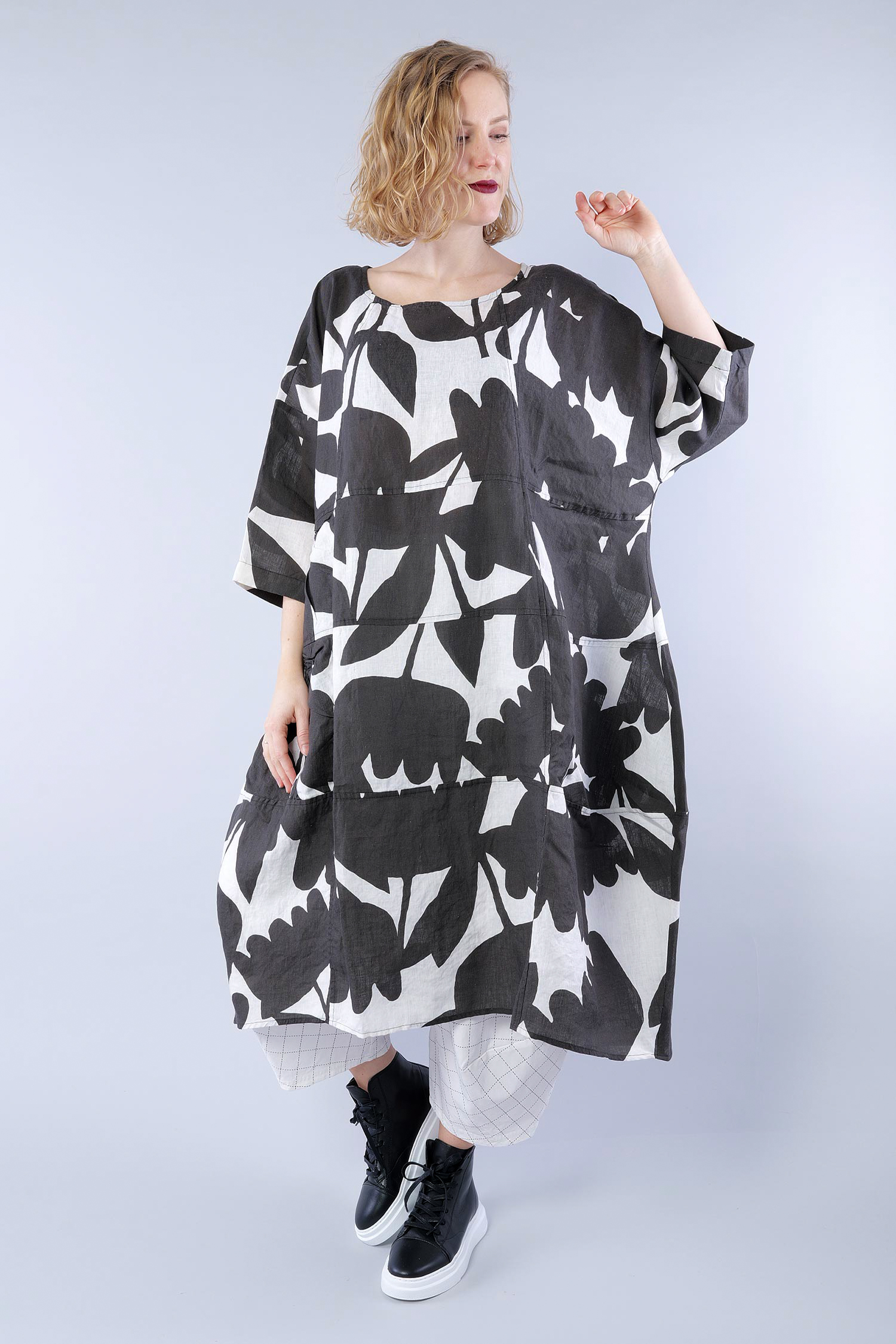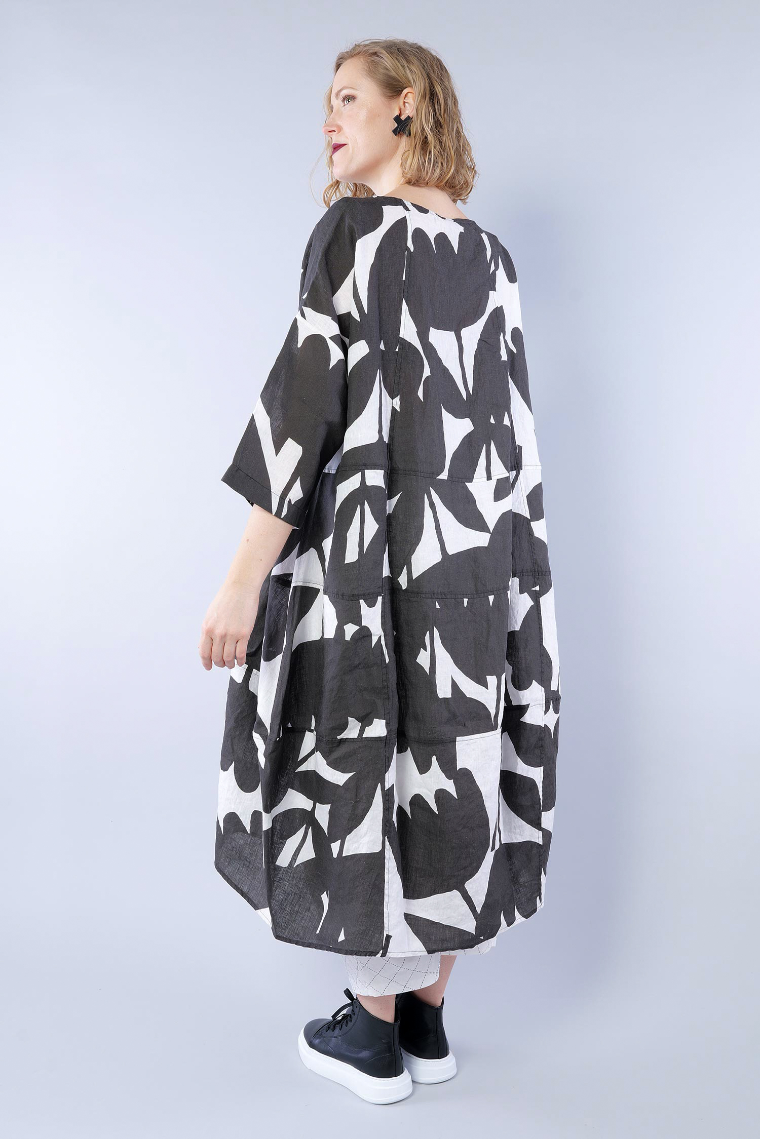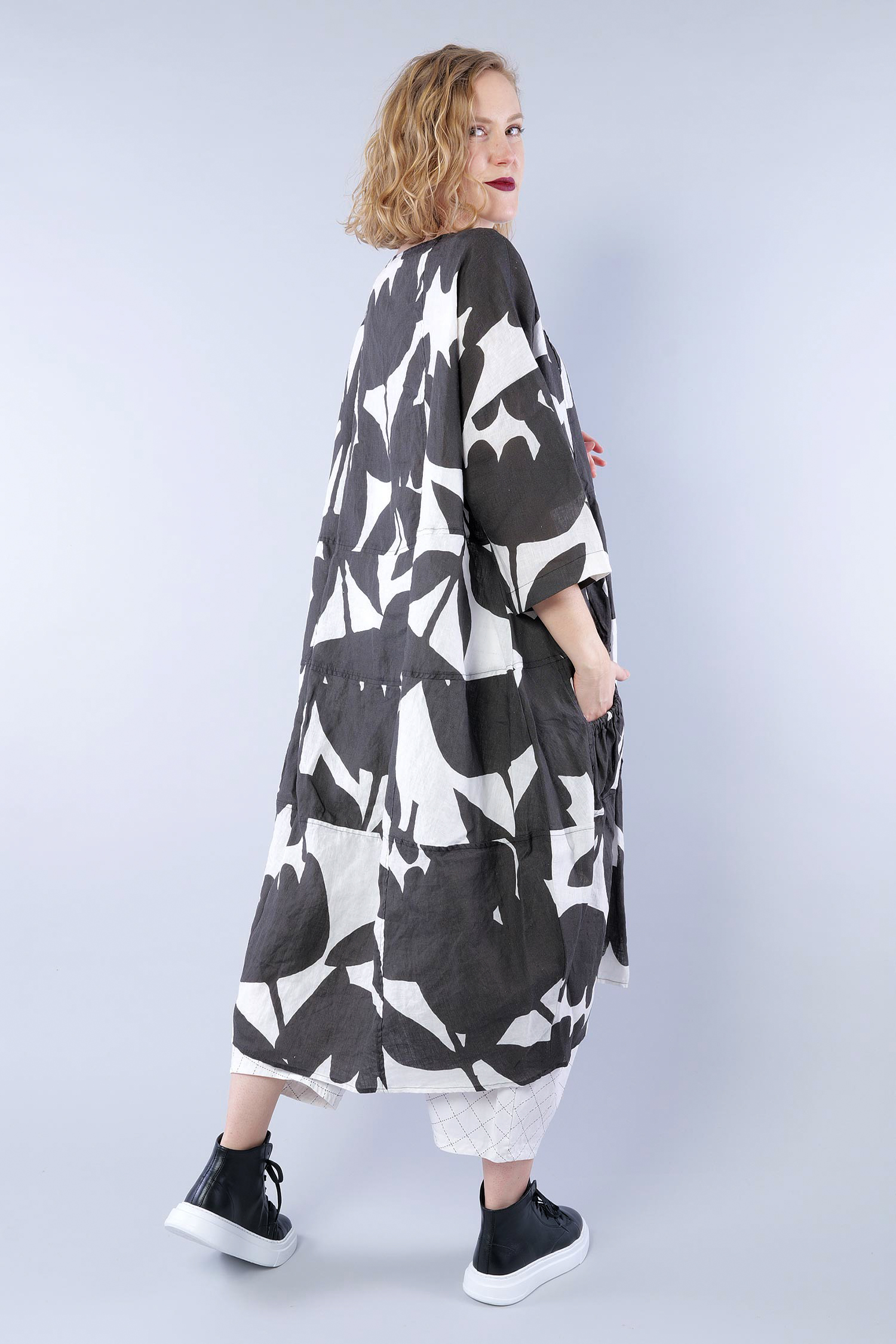 Oversized linen dress - Black print - 1263550905