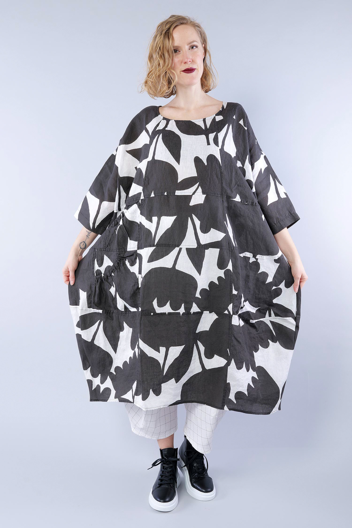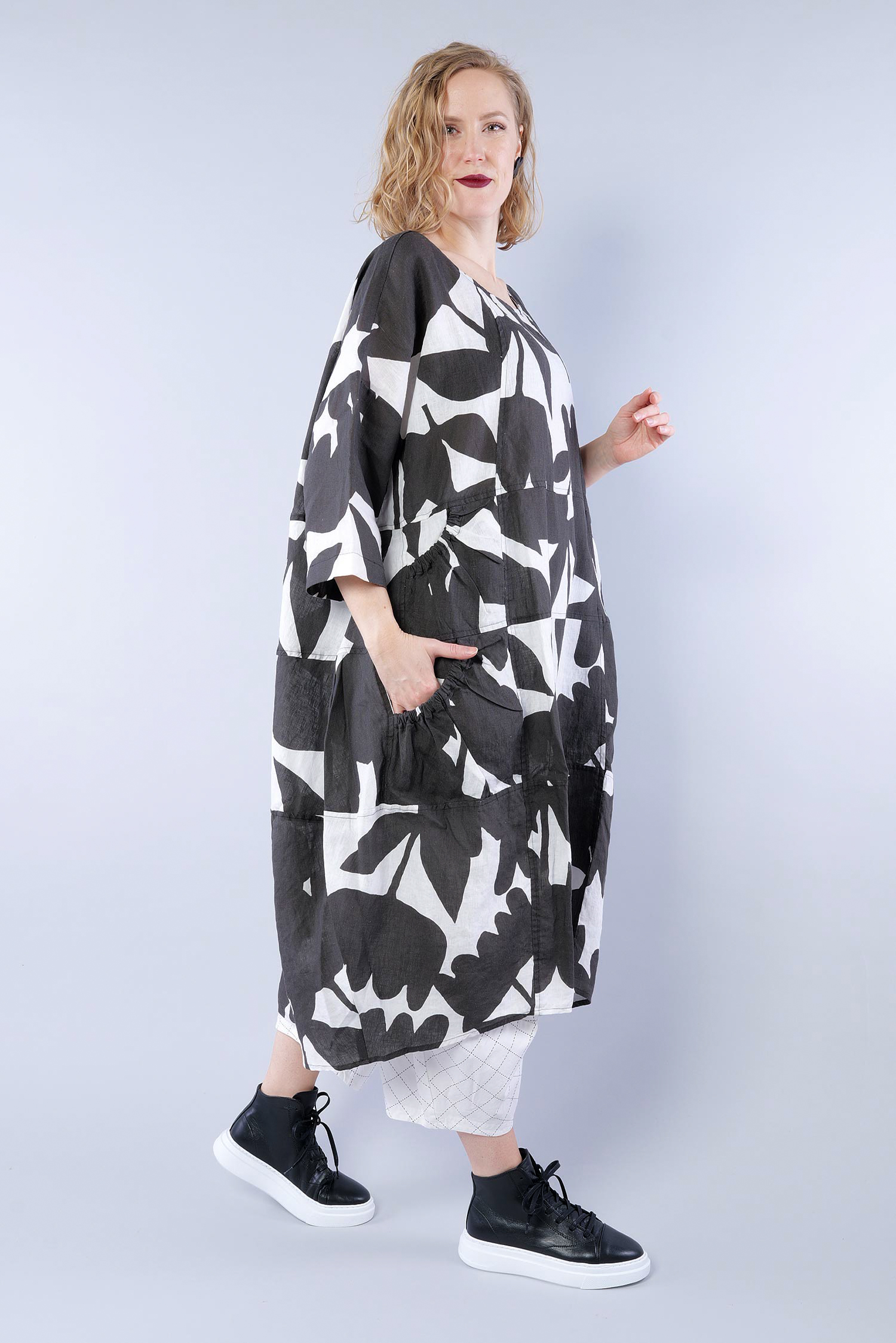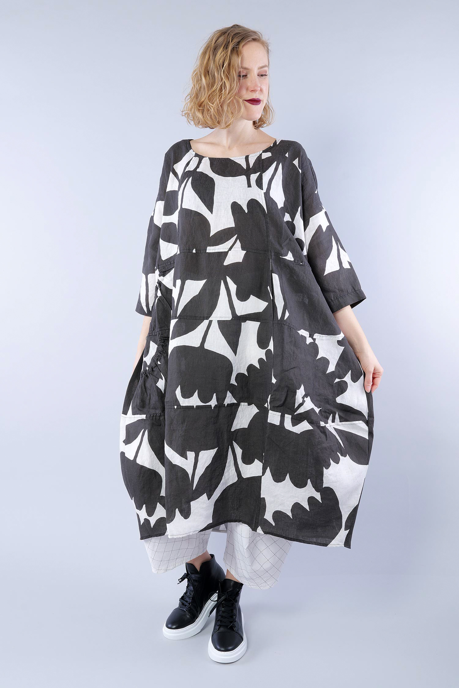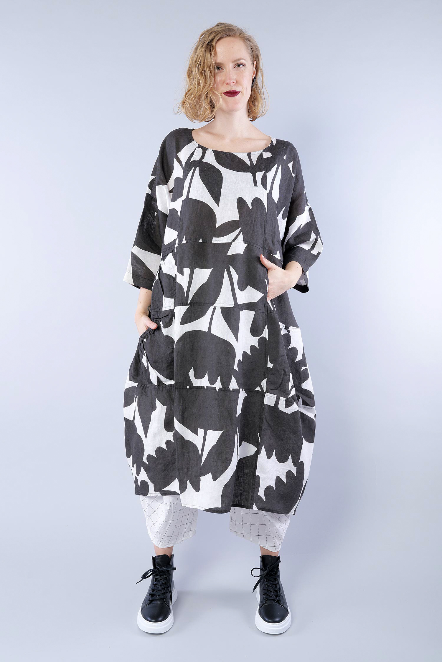 Oversized linen dress - Black print - 1263550905