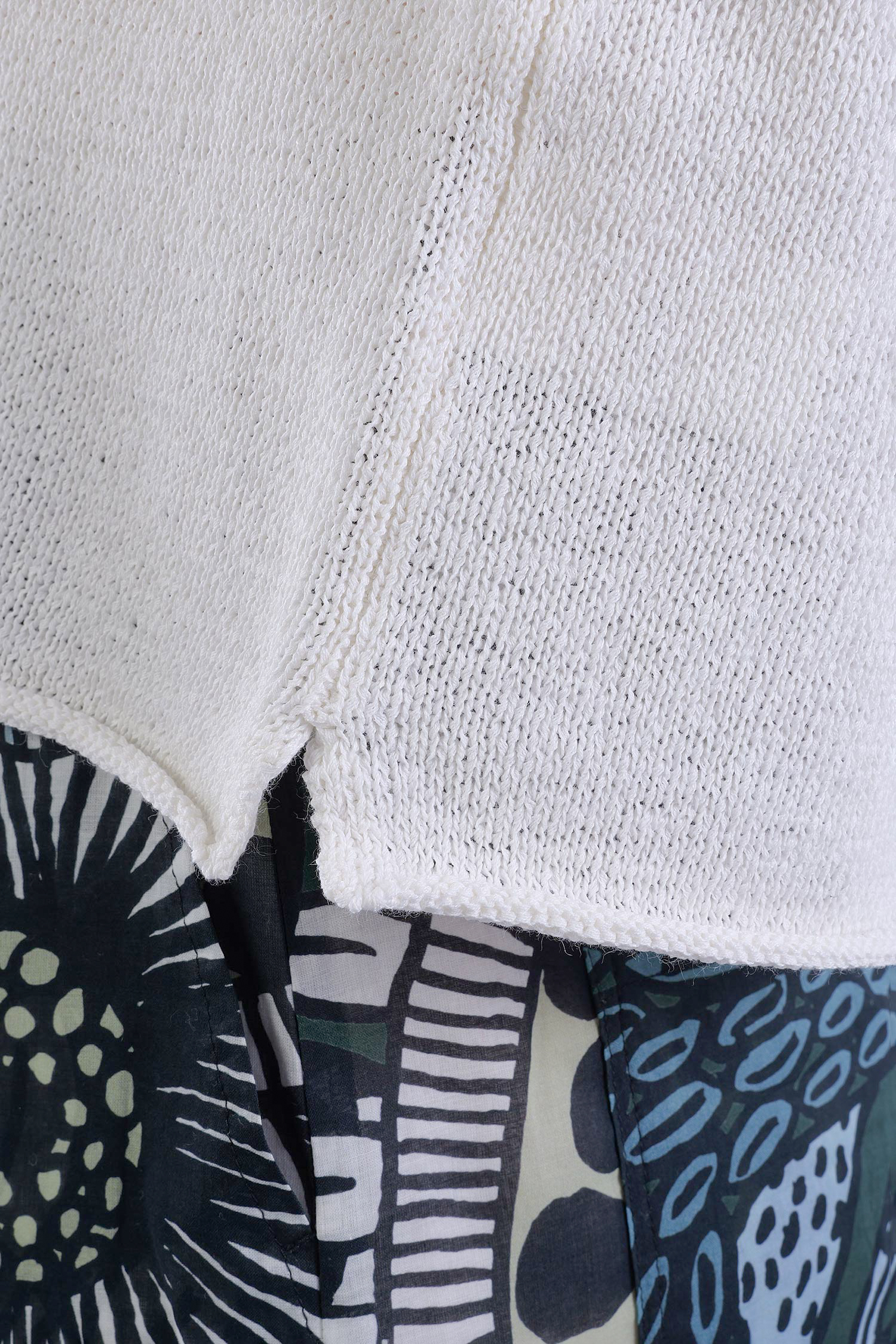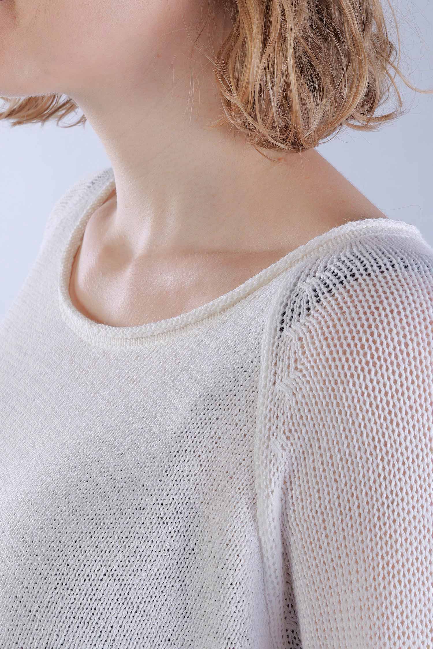 - Sleeve made of soft and thick yarn, slightly transparent due to larger stitches