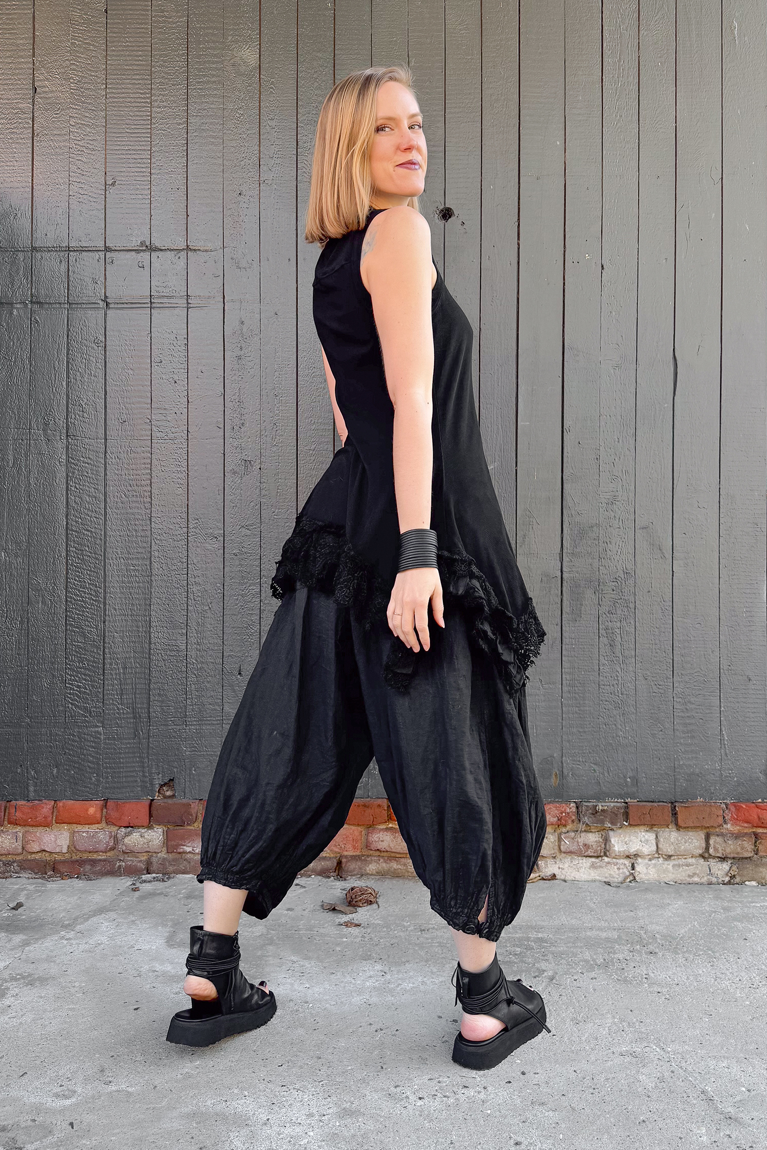 Pants with low crotch made of cotton-voile by Rundhholz Dip.