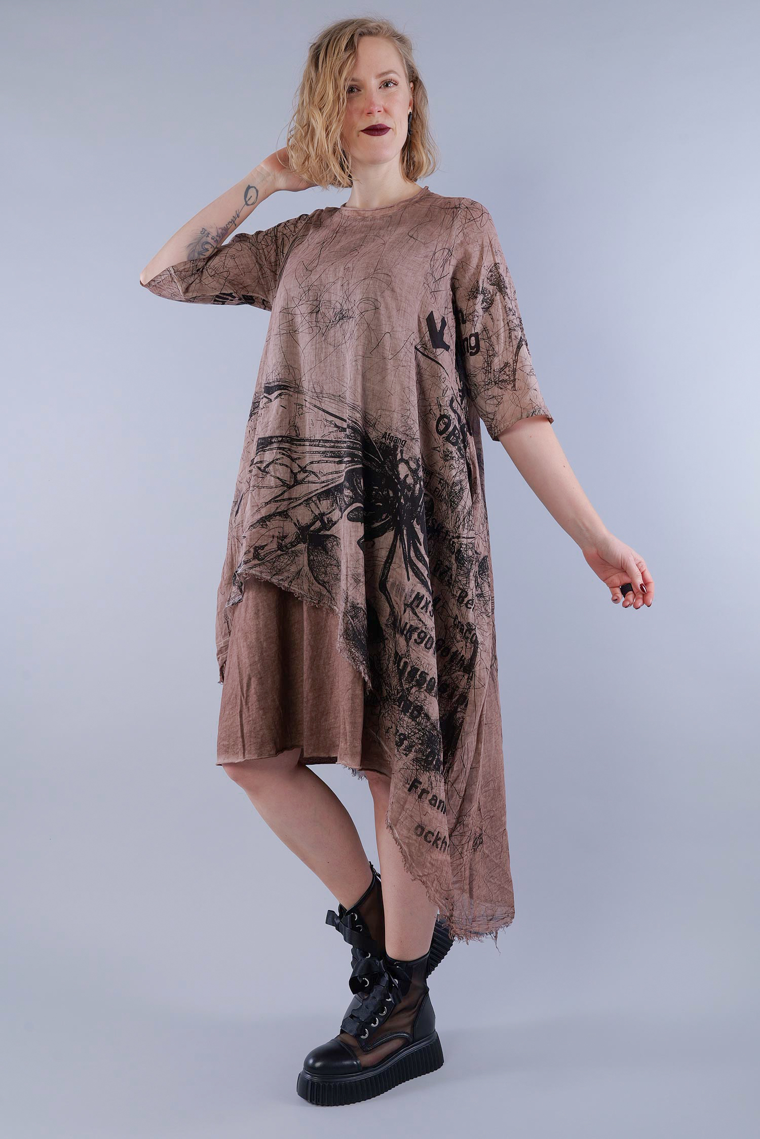 Double-layered tunic - Copper allover print old dye - Tisla