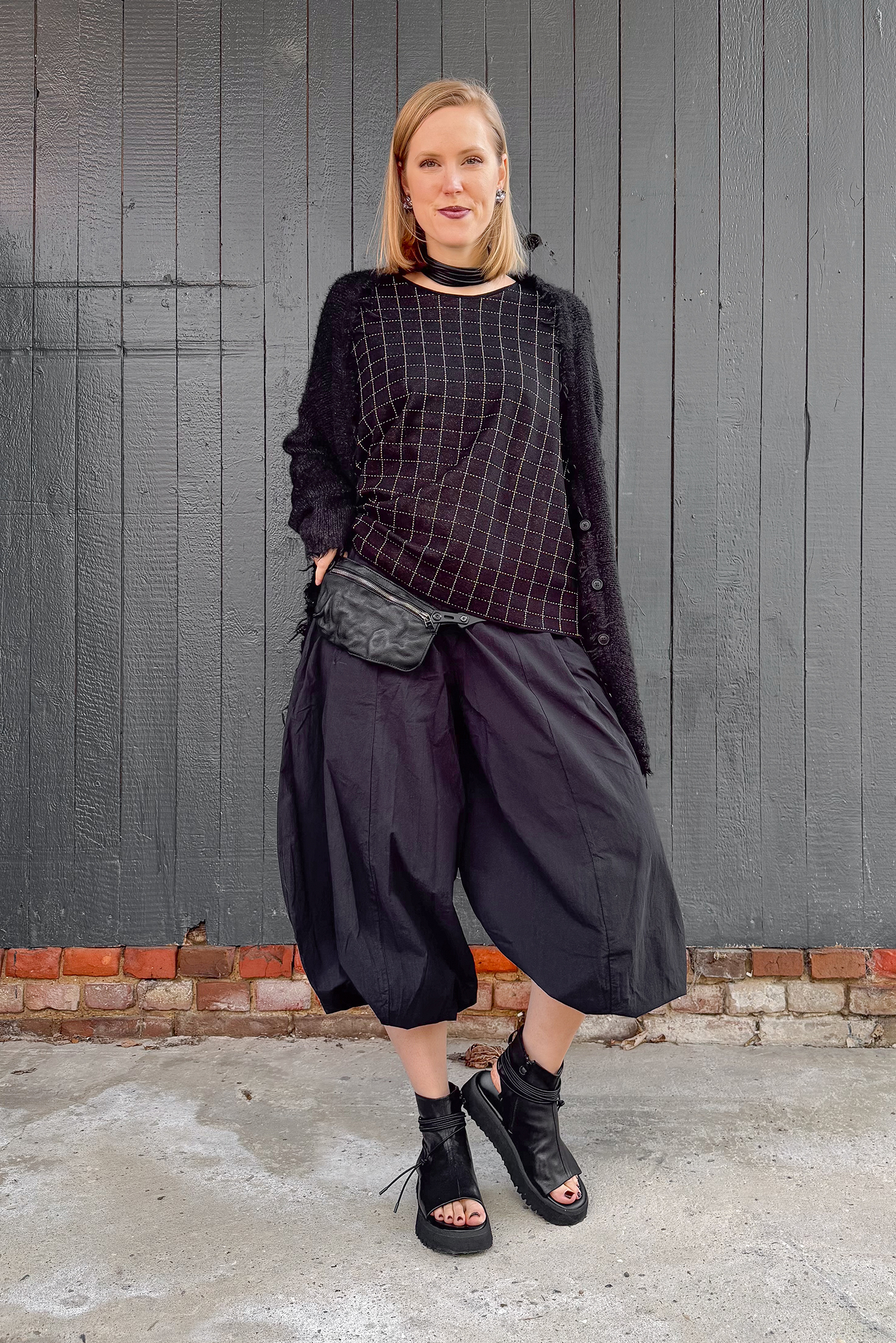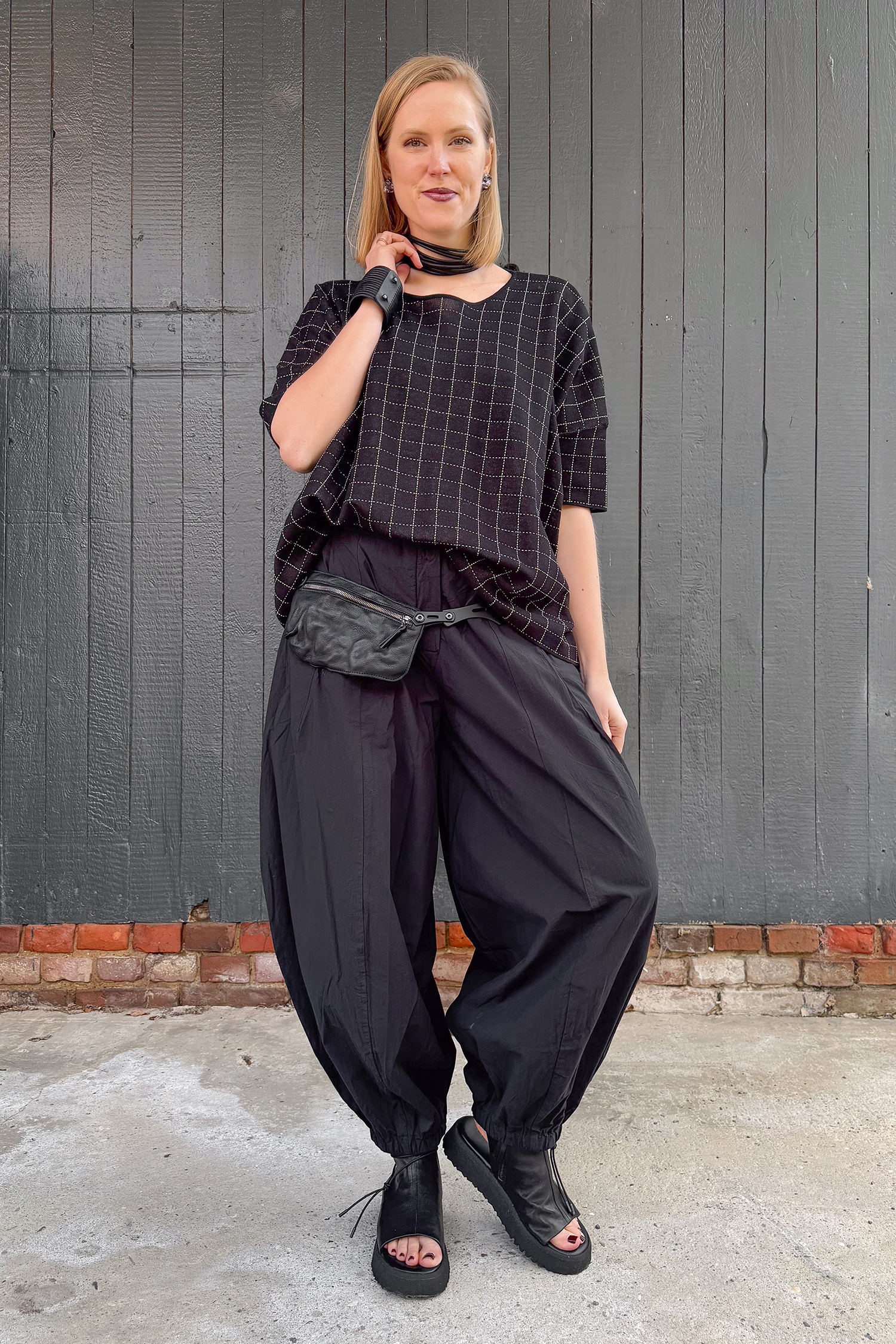 Size M/L: Waistband unstretched = 40 cm, stretched = 51 cm / Hip = 63 cm / Crotch depth = 37 cm / Length = 100 cm
