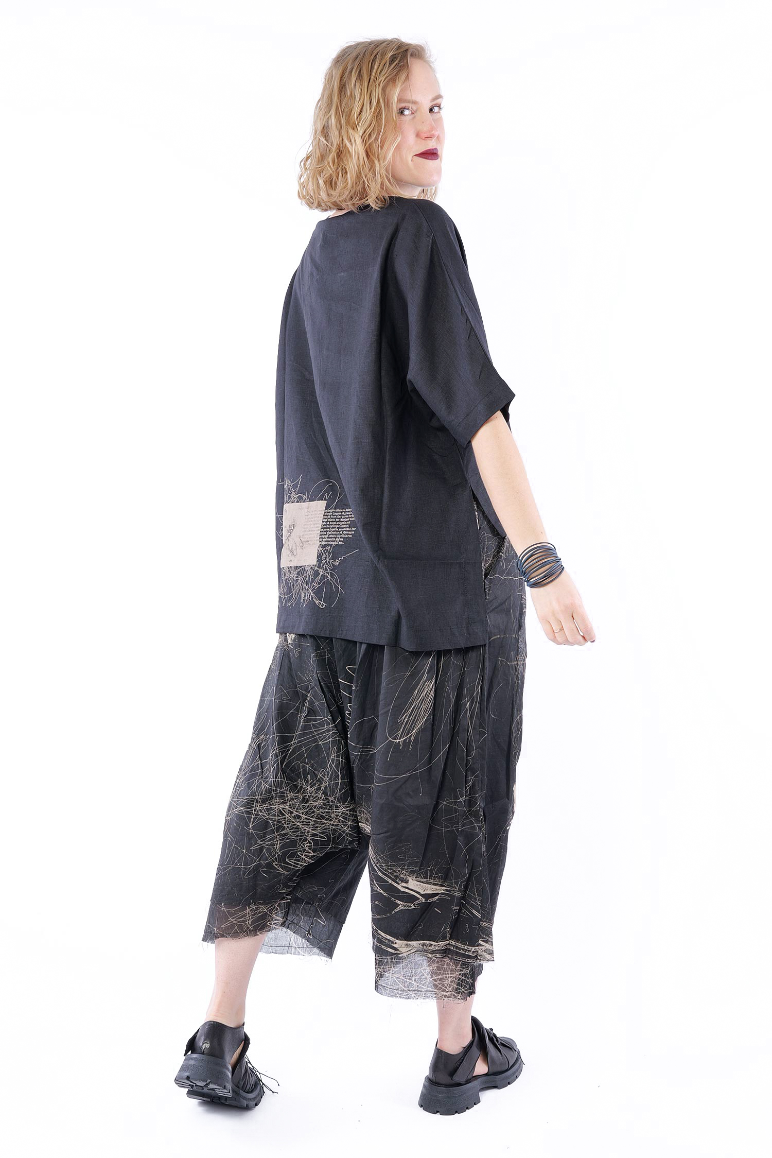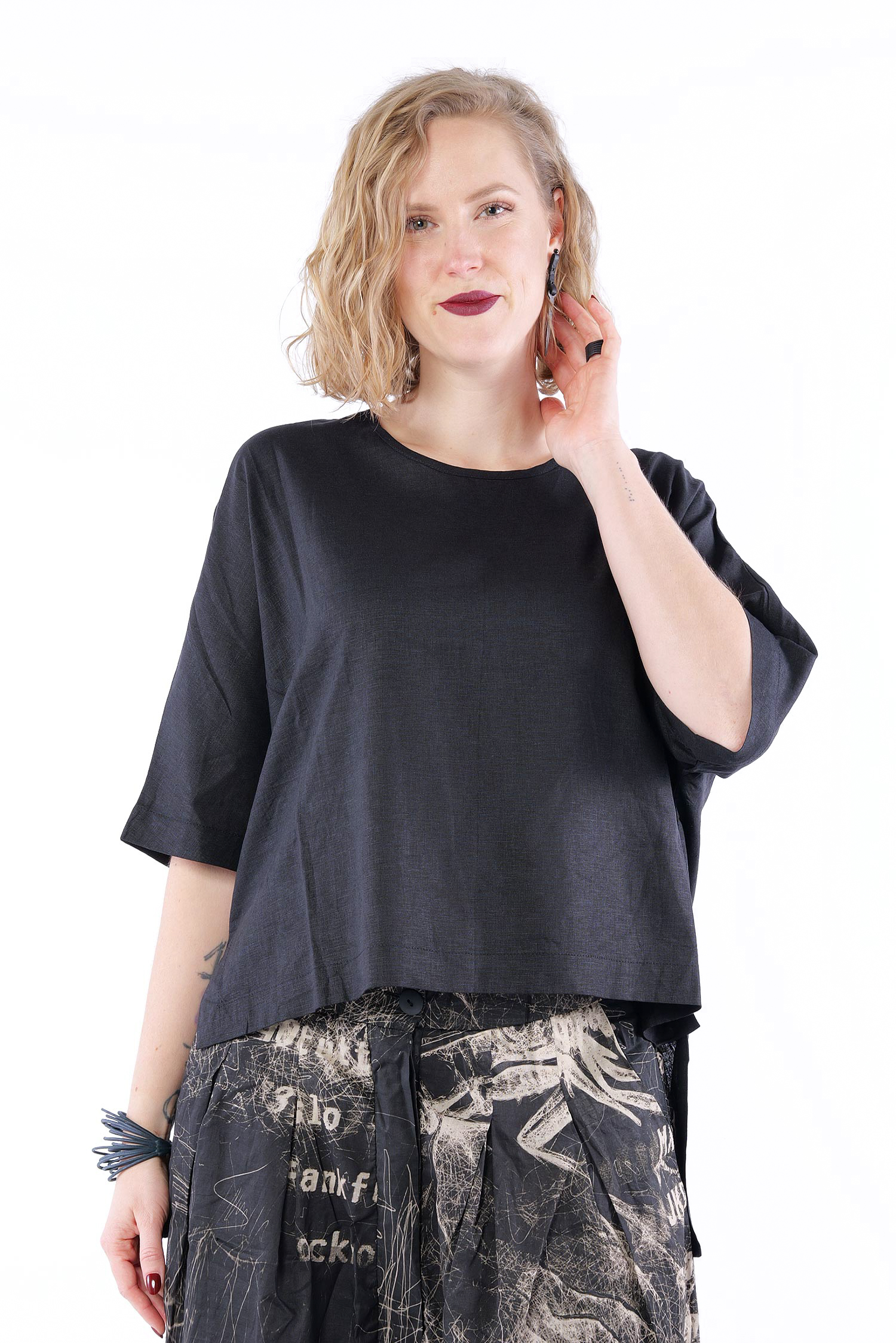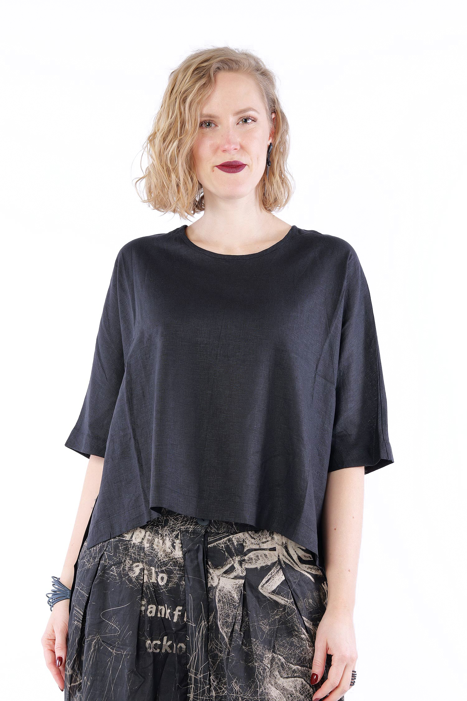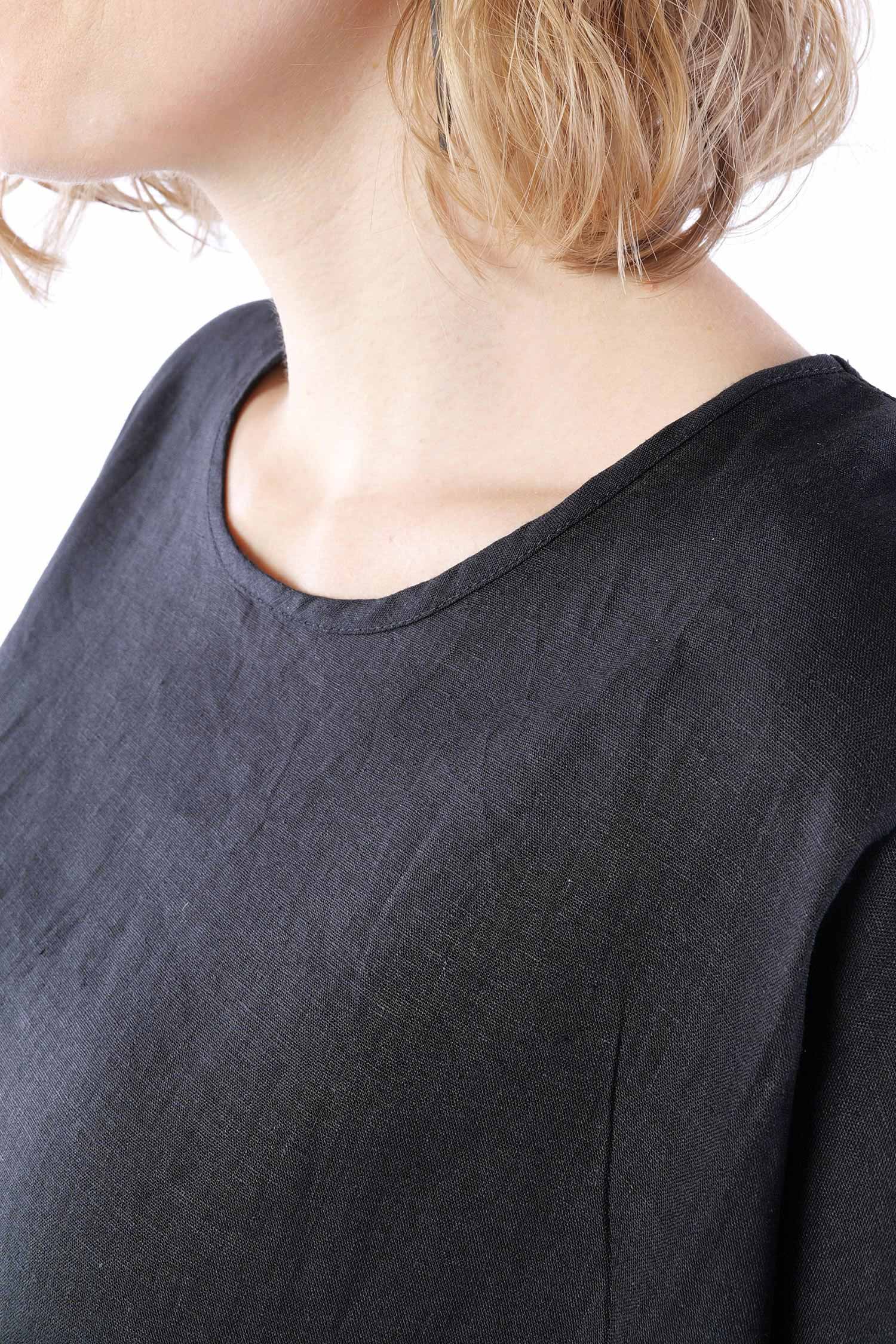 Linen-bamboo top - Black - Olyana
