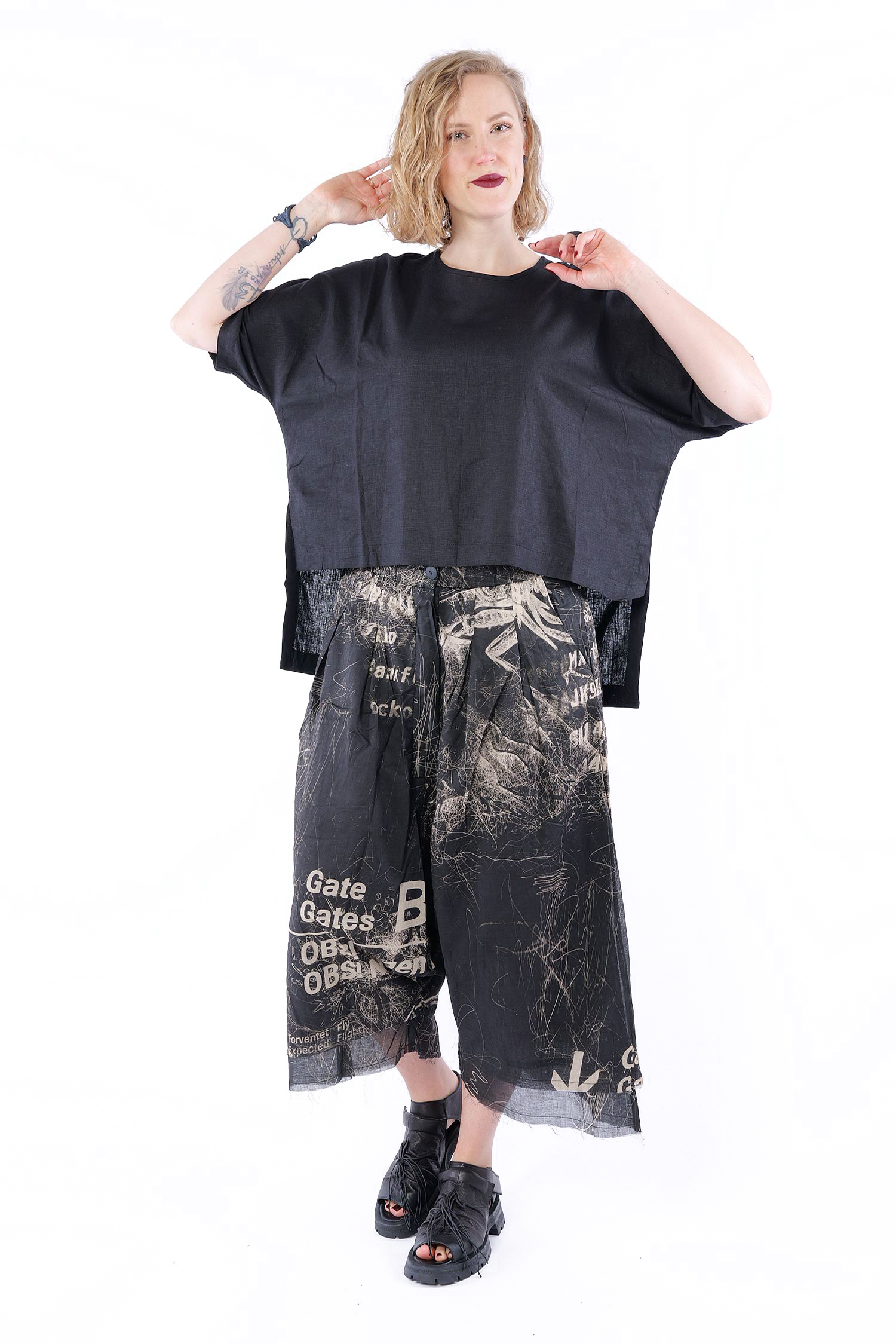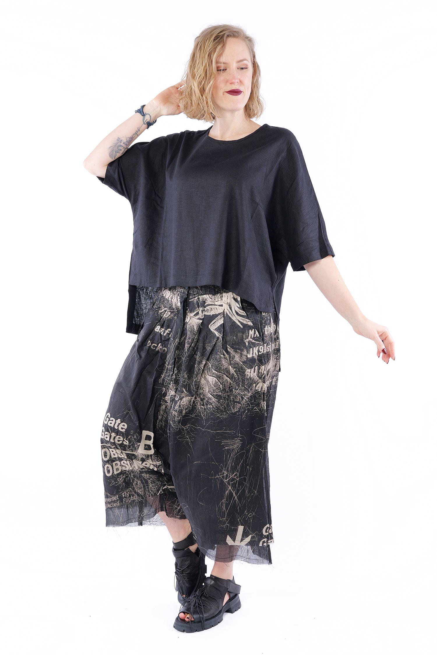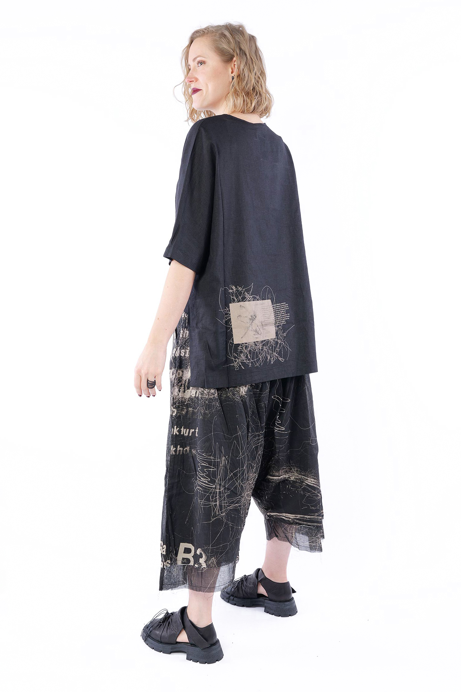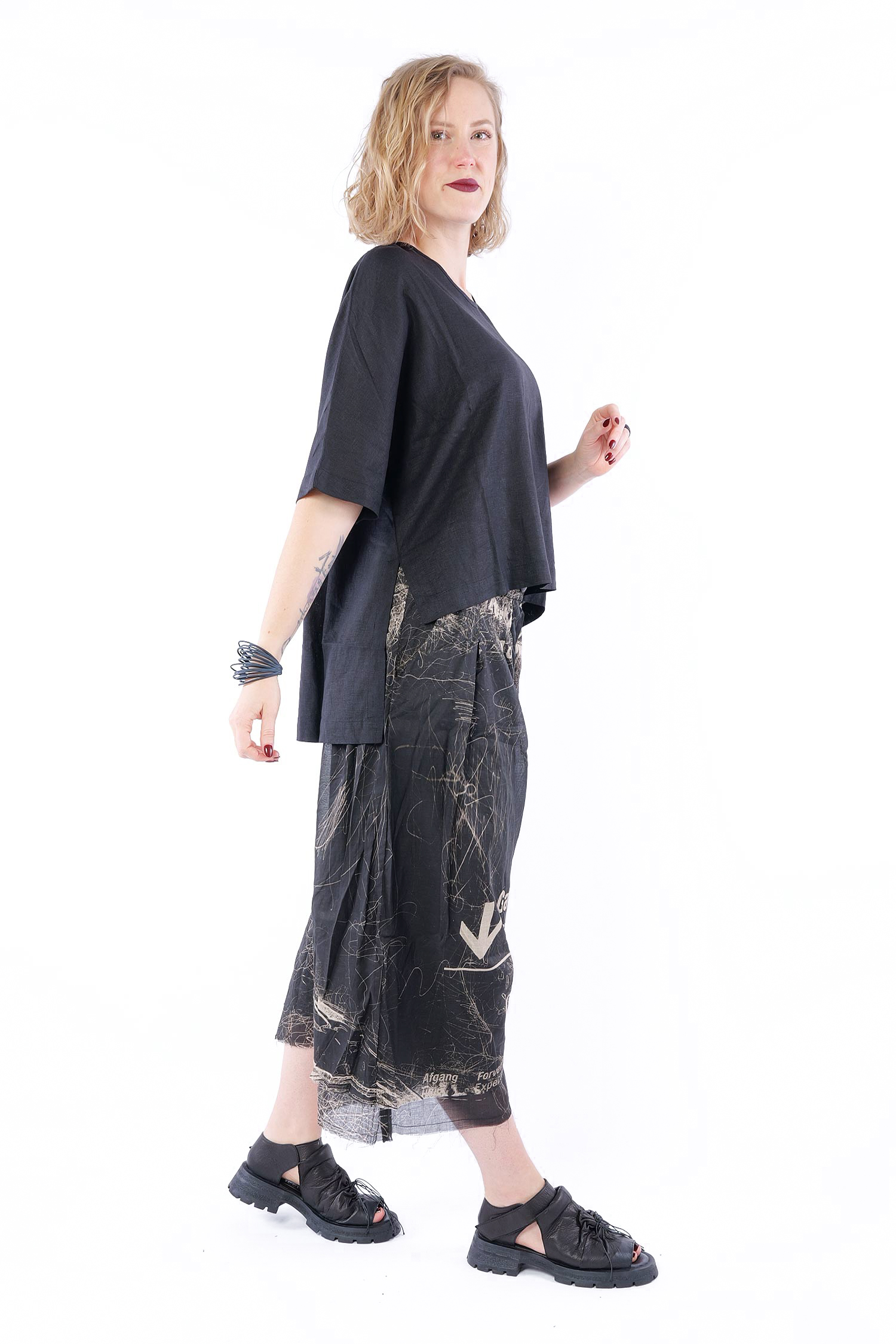 Linen-bamboo top - Black - Olyana