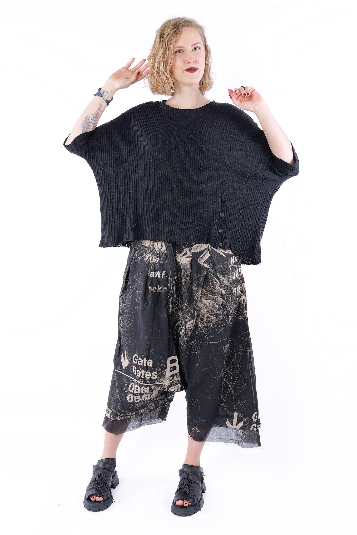 Oversized linen top - Black - 1263650506