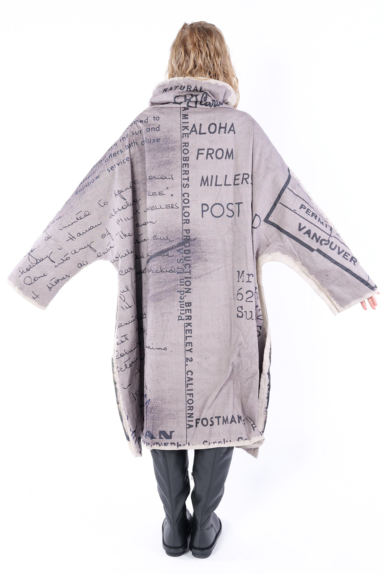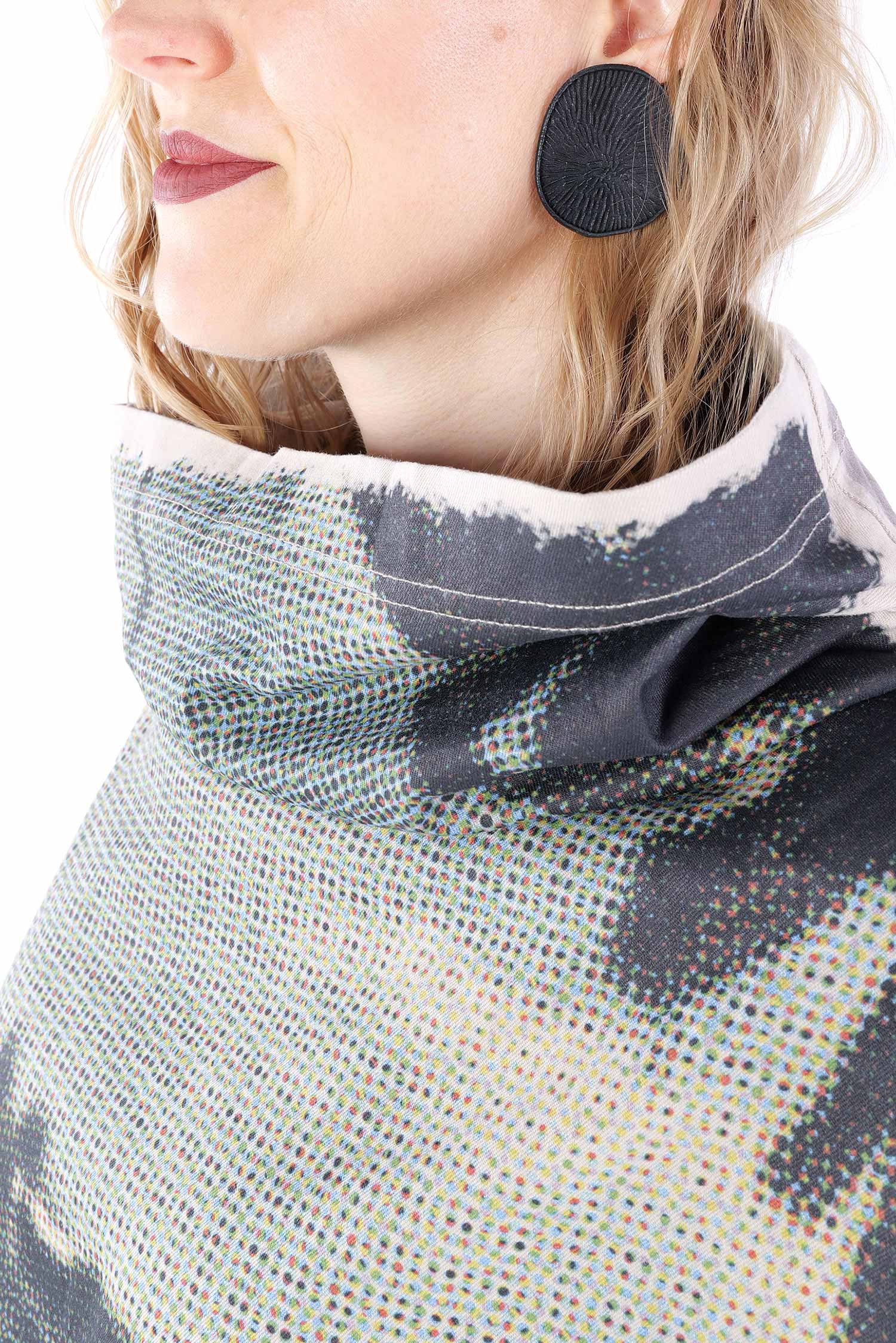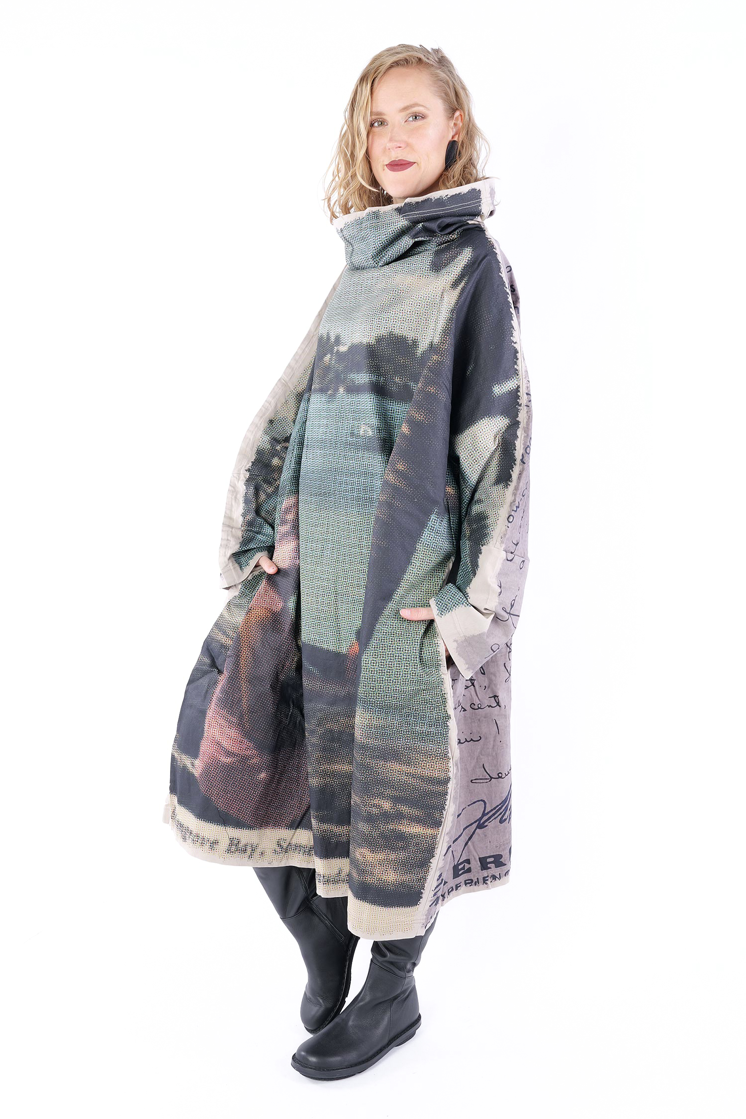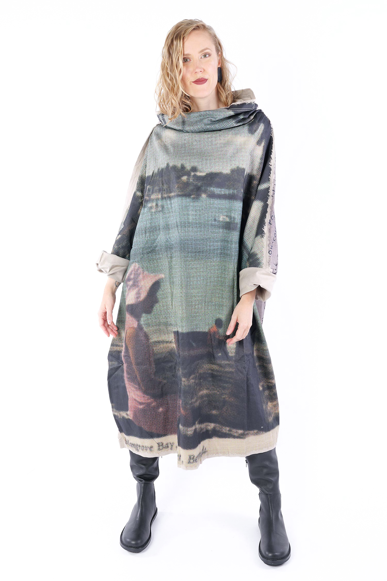 Details: - Loose collar - Long loose sleeves - Side pockets - Print all over - Elastic material - Oversize - Extended shoulder - Tulip-shaped cut