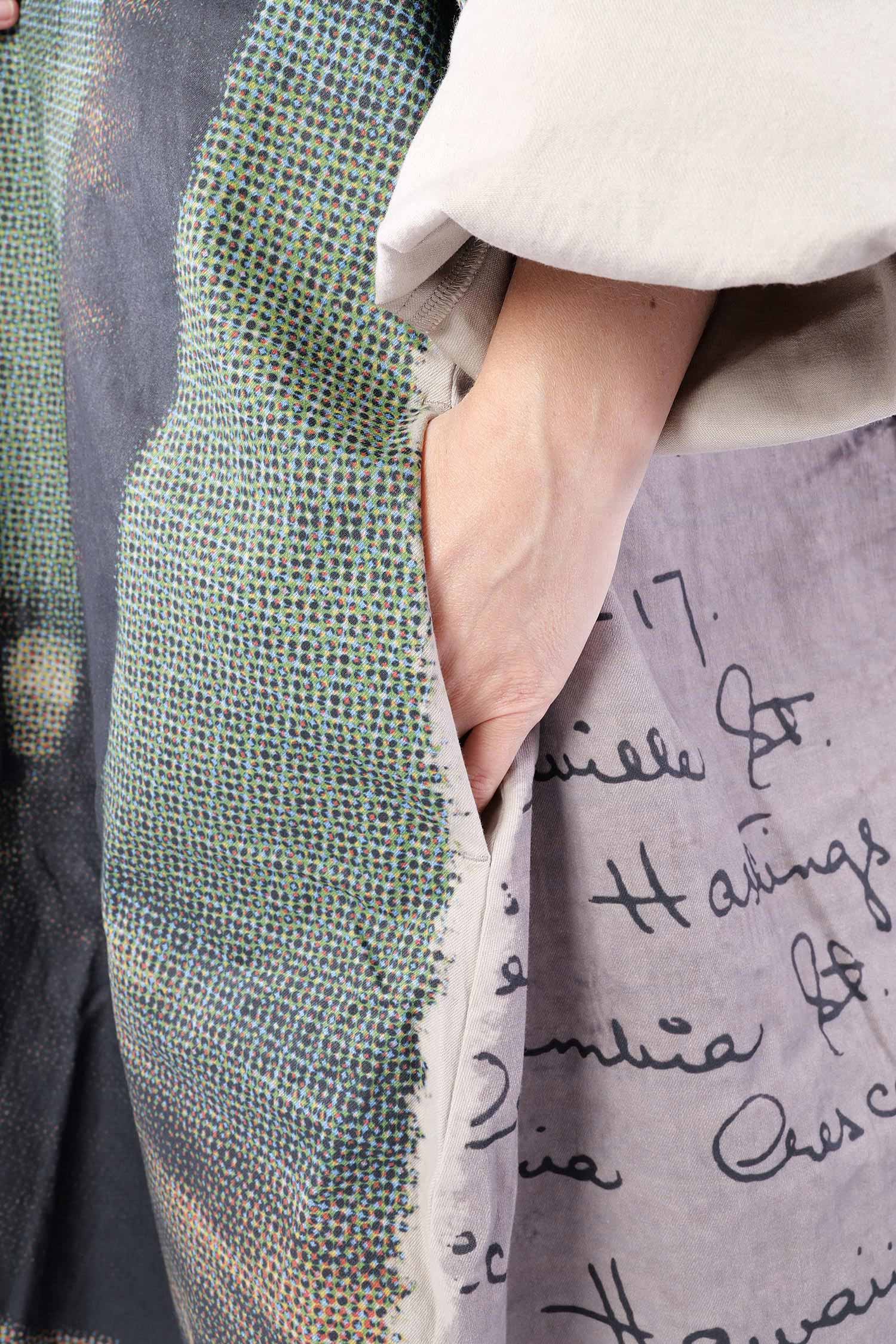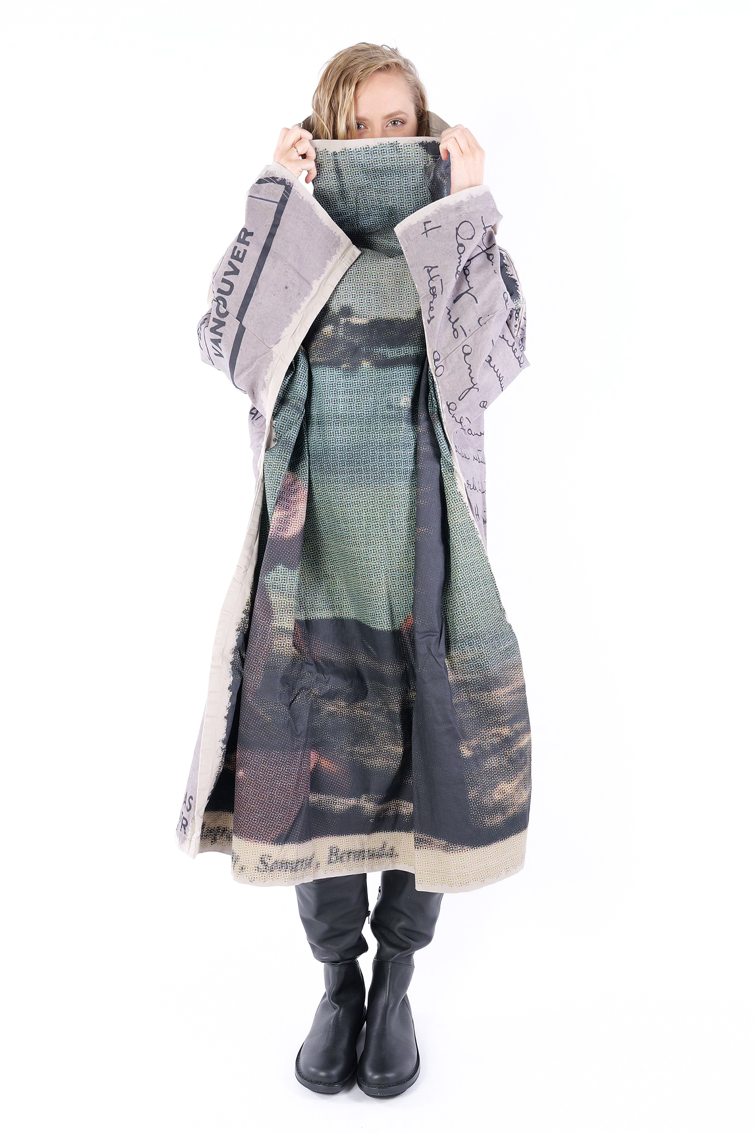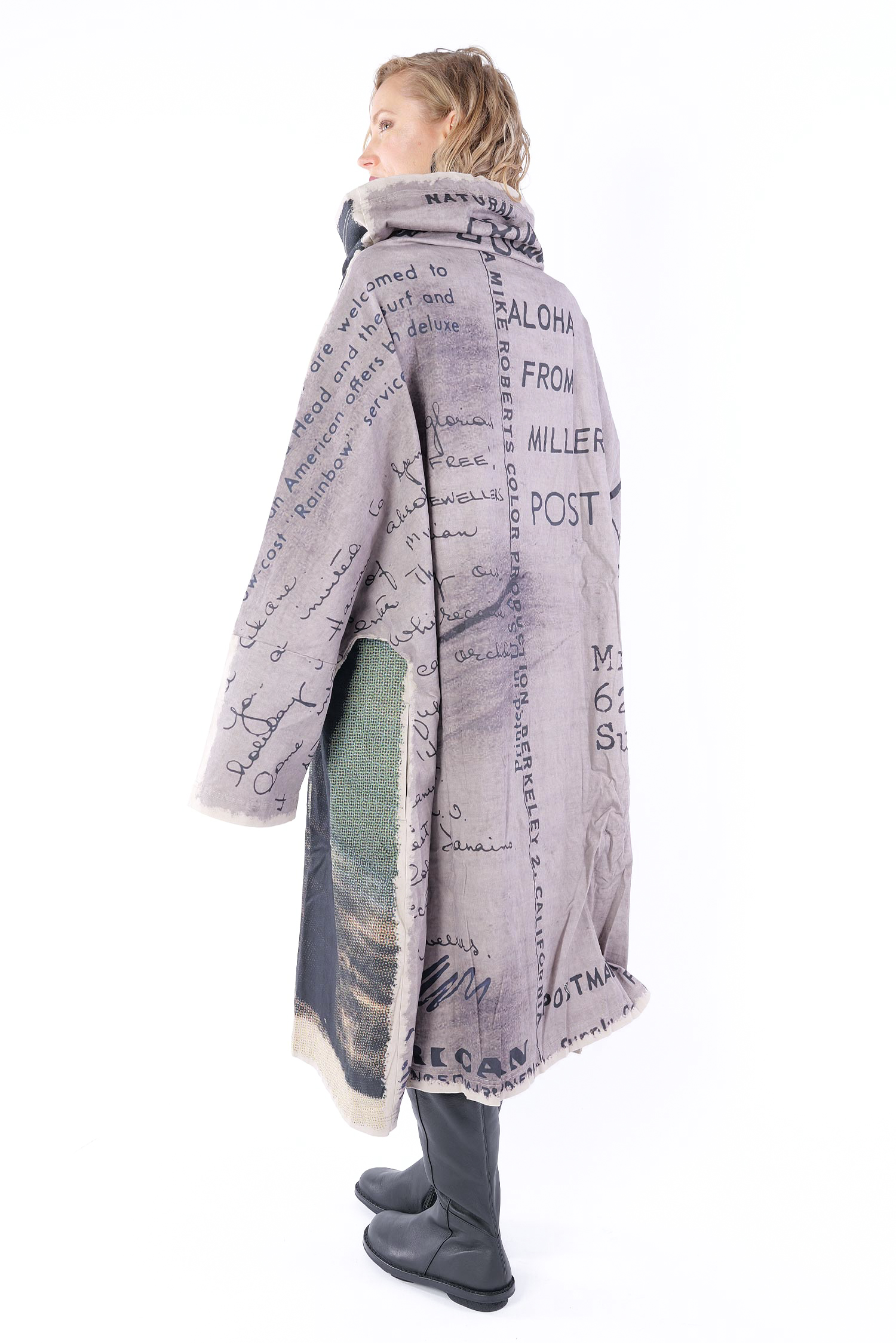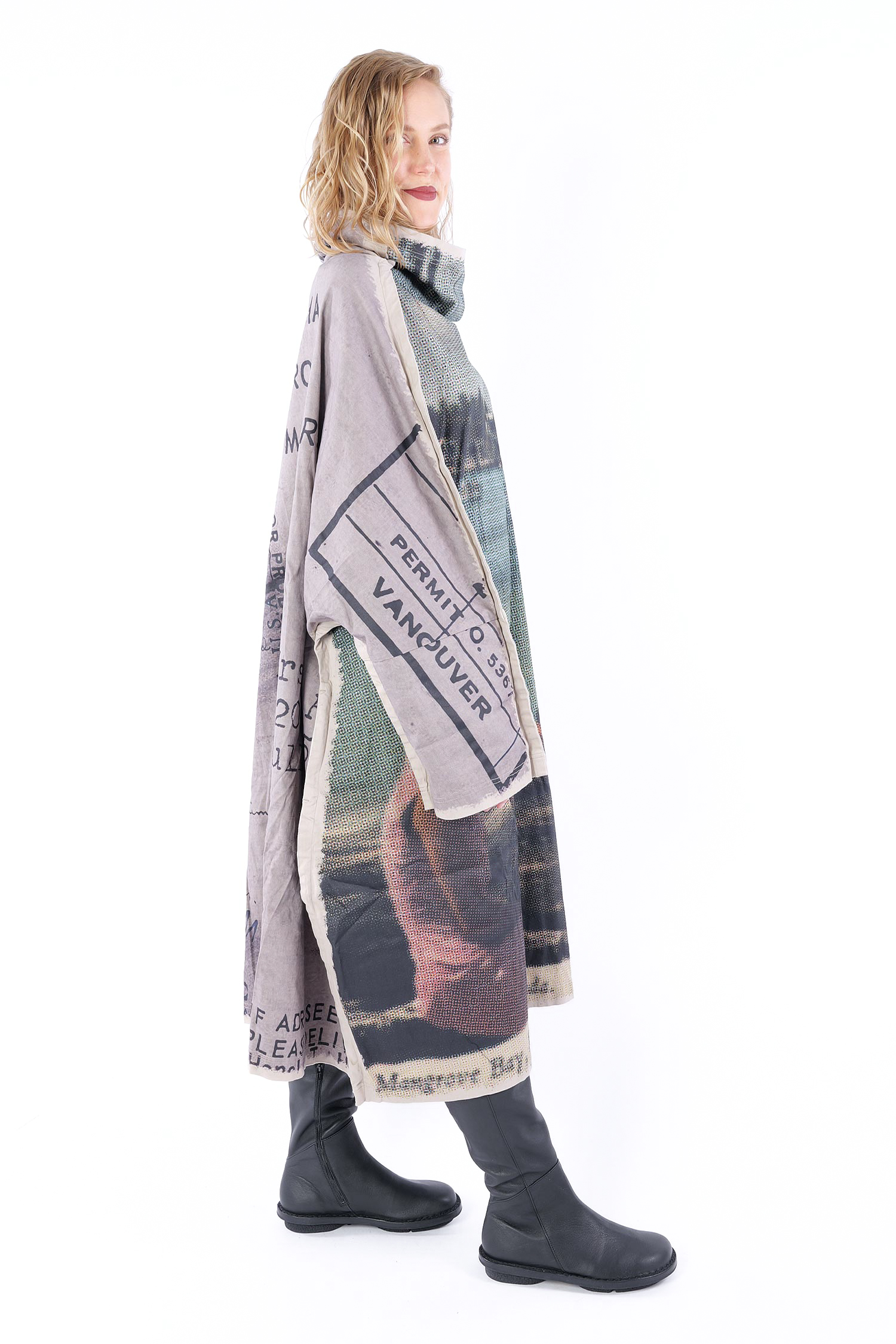 Details: - Loose collar - Long loose sleeves - Side pockets - Print all over - Elastic material - Oversize - Extended shoulder - Tulip-shaped cut